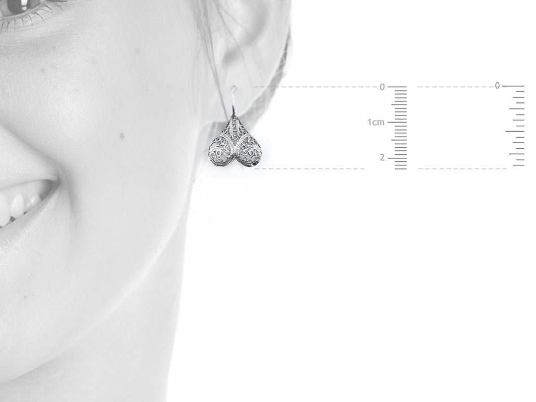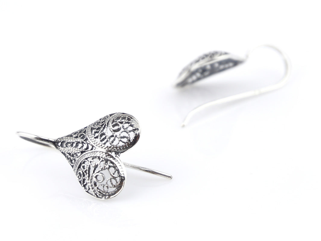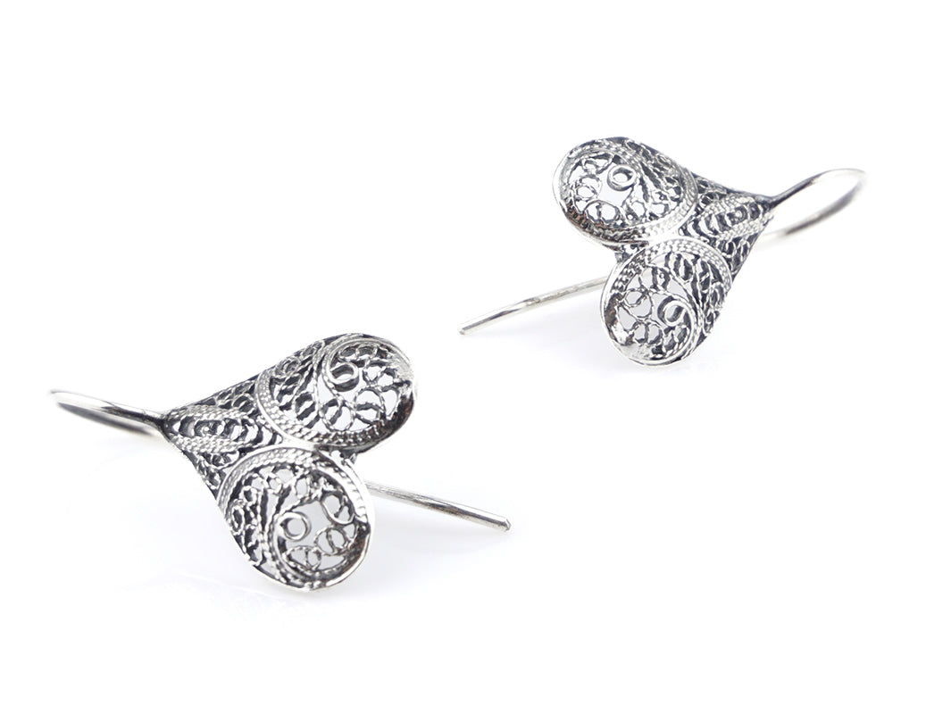Boucles d'Oreilles Coeur Inversé, Filigrane Portugaise, Argent 925