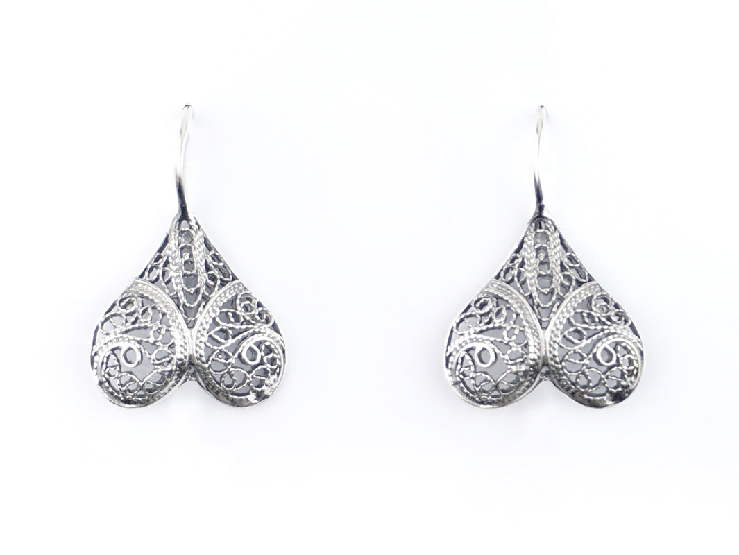 Élégantes Boucles d'Oreilles Cœur Inversé – également connues sous le nom de papillon ou de cils, fermeture crochet. Filigrane Portugaise, fabriqué au Portugal en Argent 925.