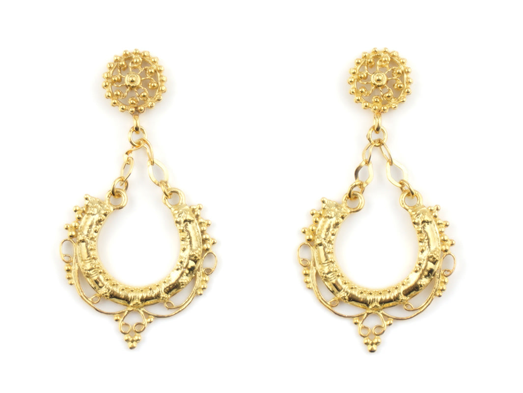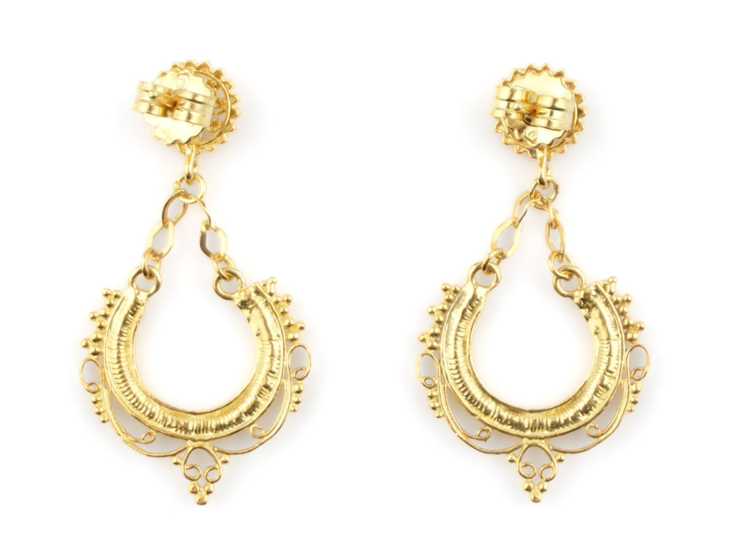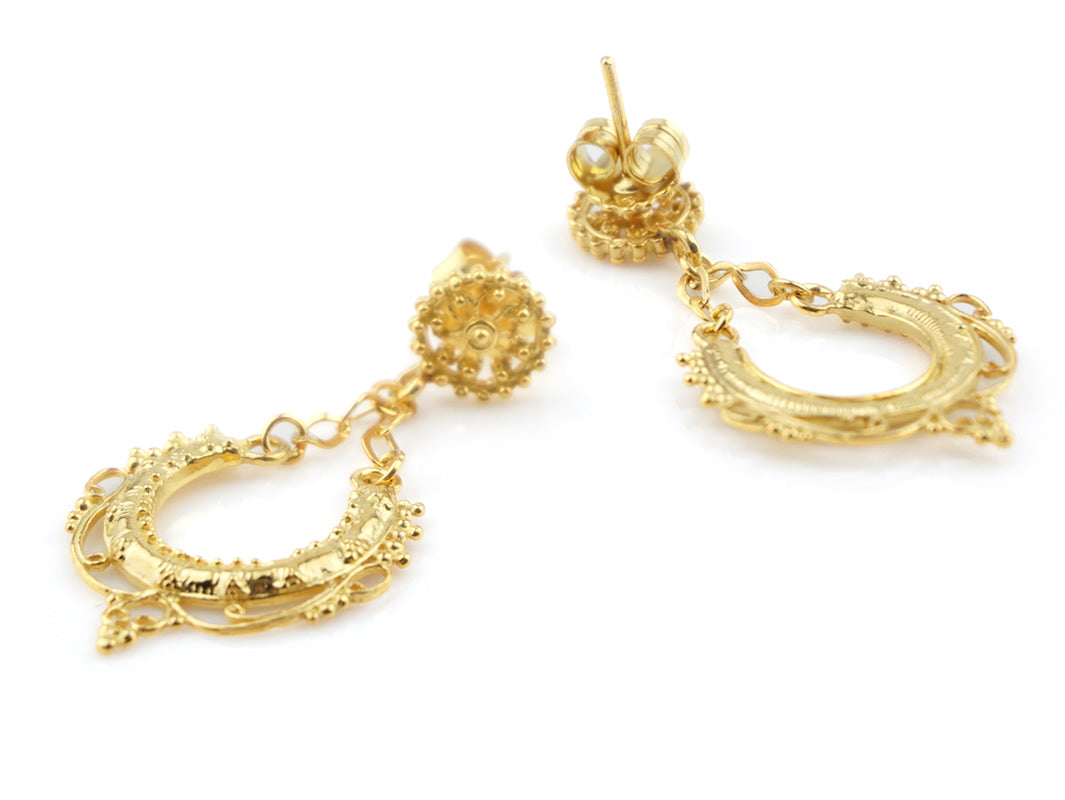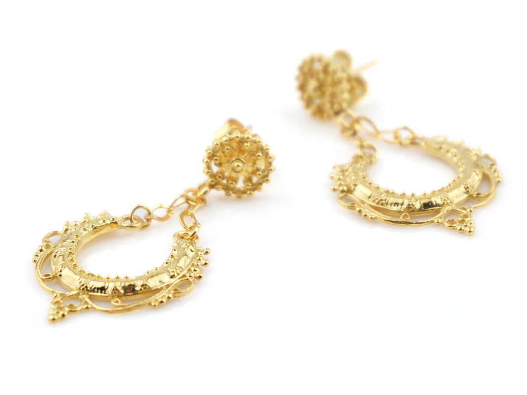 Boucles d'Oreilles Mini Arrecadas, Filigrane Portugaise, Argent 925 Doré
