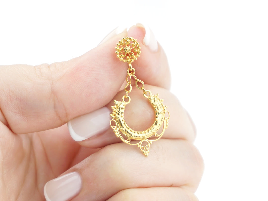 Élégantes boucles d'oreilles Mini Arrecadas, fermeture poussette. Filigrane Portugaise, fabriqué au Portugal en Argent 925 Doré.