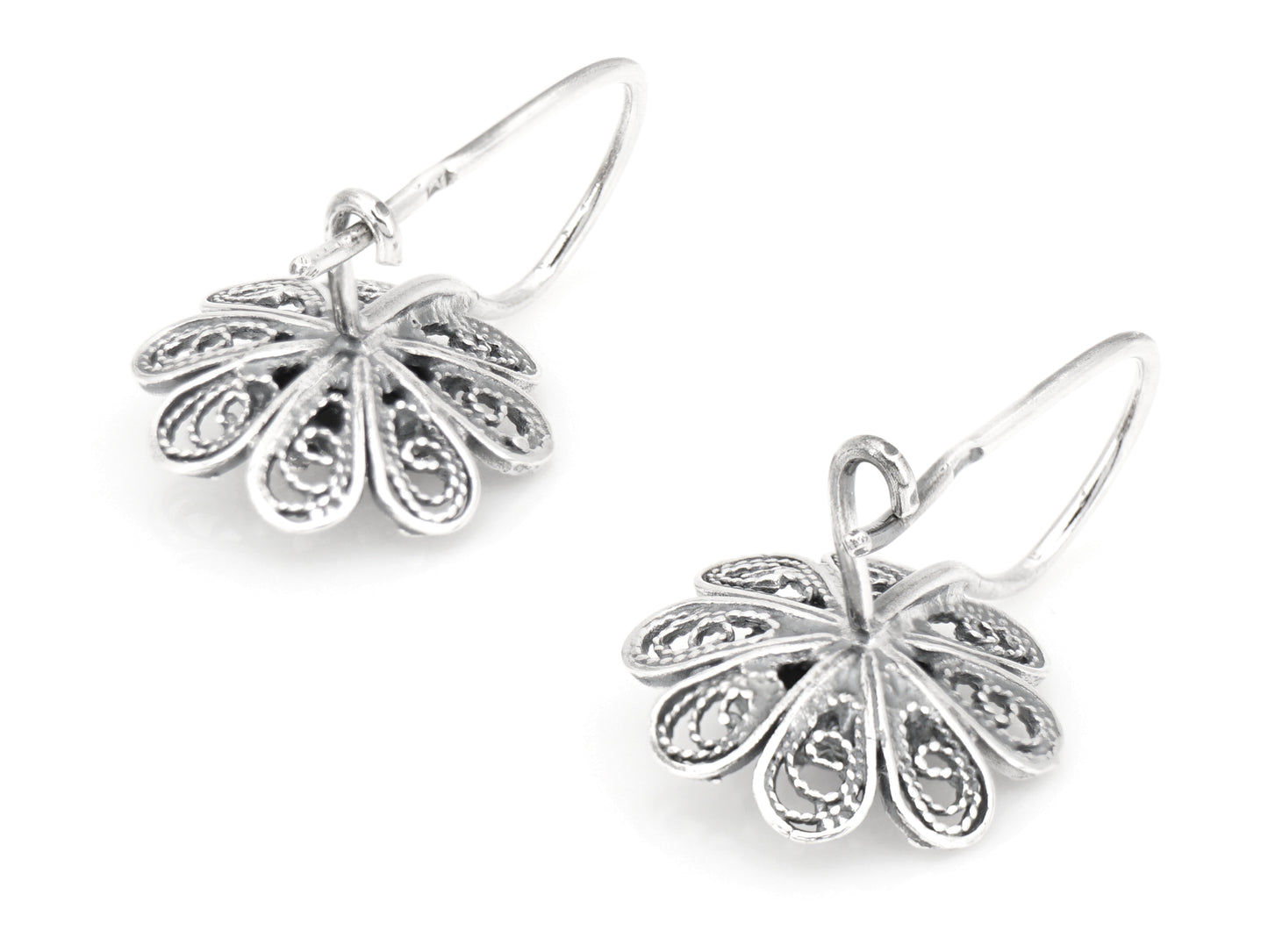 Boucles d'Oreilles Fleurs avec Caramujos, Filigrane Portugaise, Argent 925