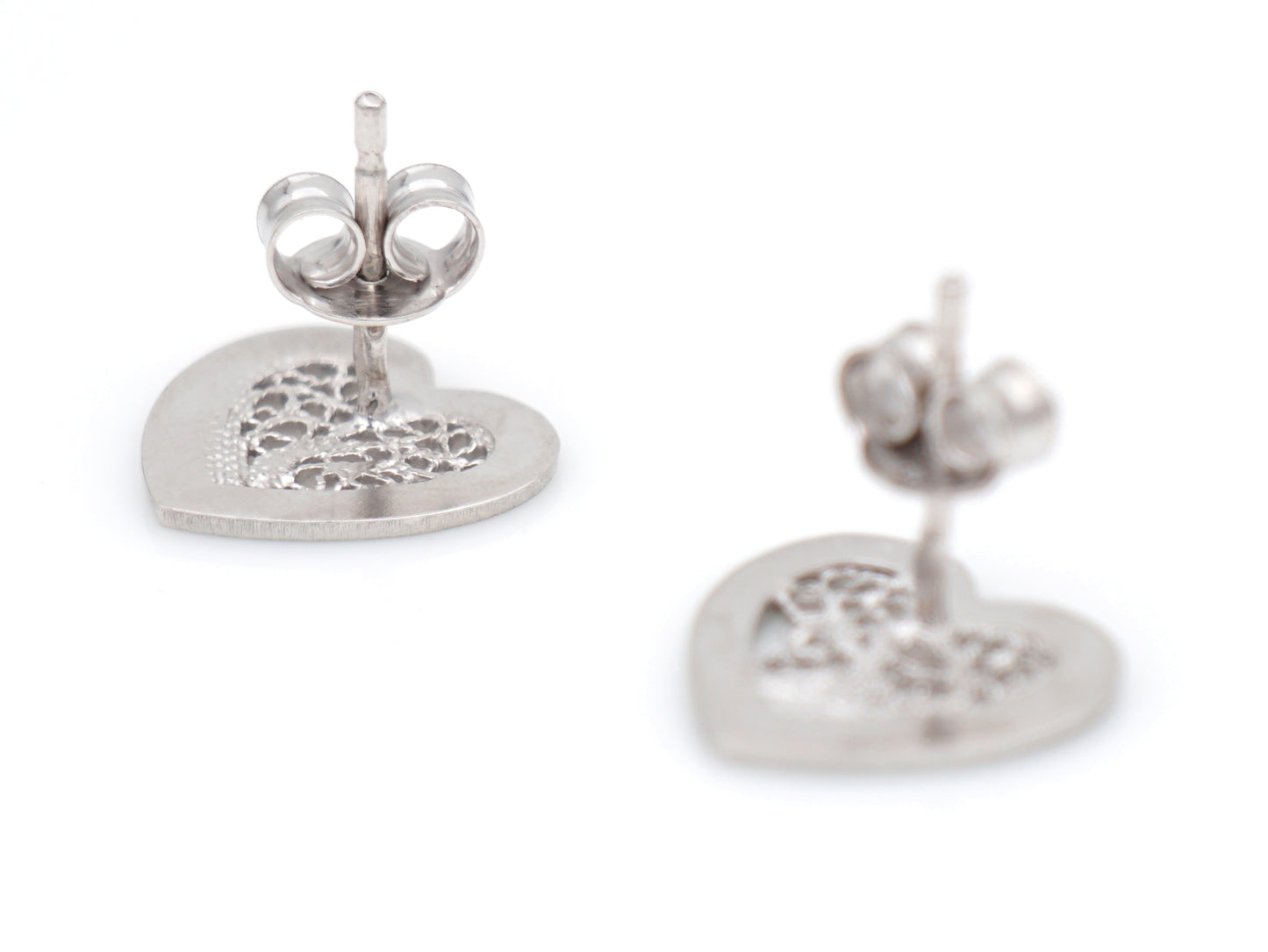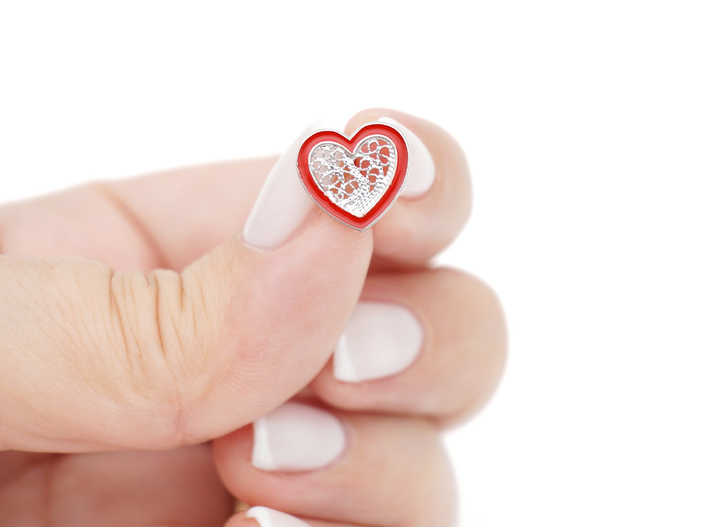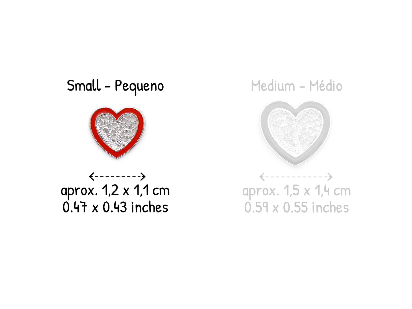 Elégante Parure "Petits Coeurs Émaillés en Rouge" de Boucles d'Oreilles à poussette et Collier réglable. Filigrane Portugaise, fabriqué au Portugal en Argent 925 Rhodié.