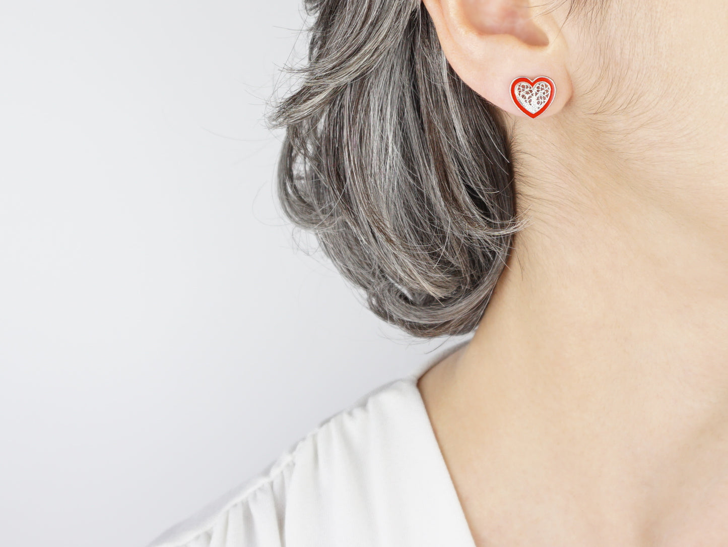 - Modèle: Boucles d'Oreilles Petits Coeurs Colorés en Rouge