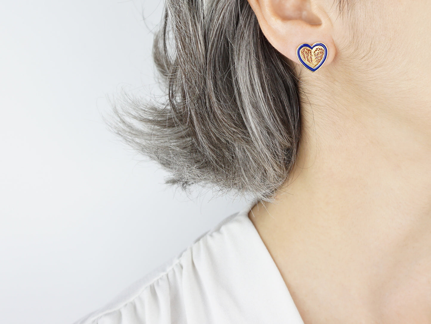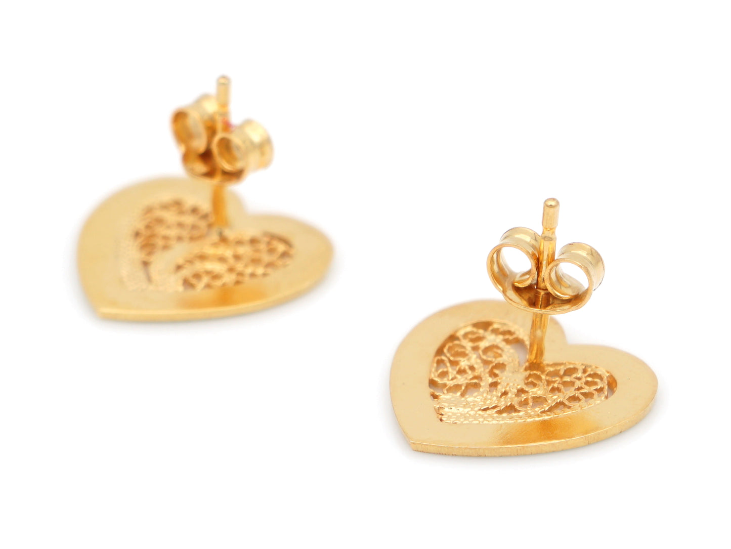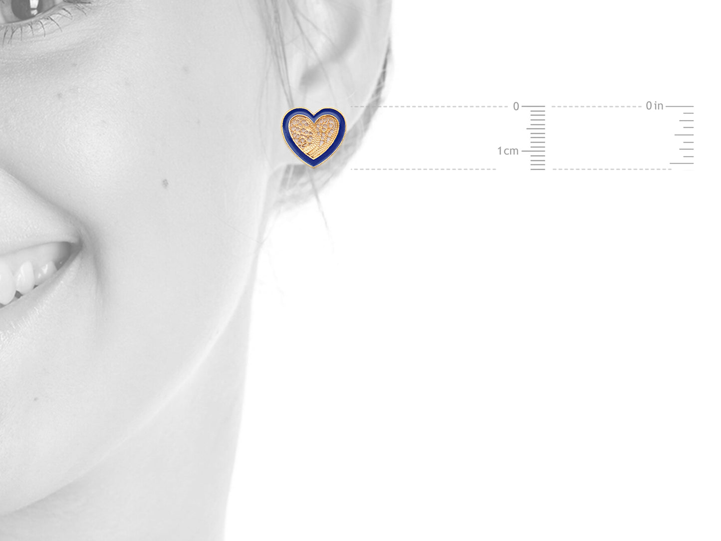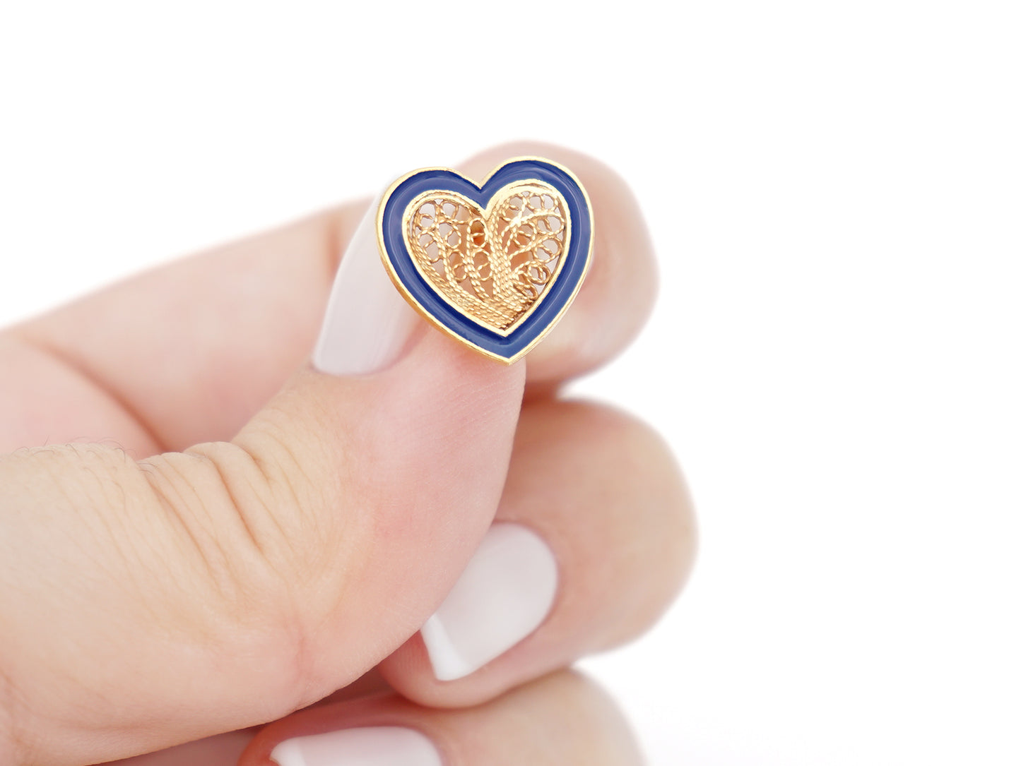 Elégantes Boucles d'Oreilles Coeurs Moyens avec Émail Bleu, fermeture poussette. Filigrane Portugaise, fabriqué au Portugal en Argent 925 Doré.