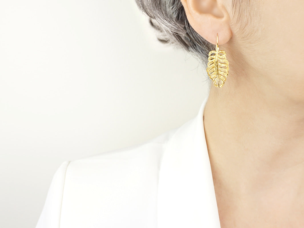 - Modèle: Boucles d'Oreilles Feuilles Pendantes Moyennes