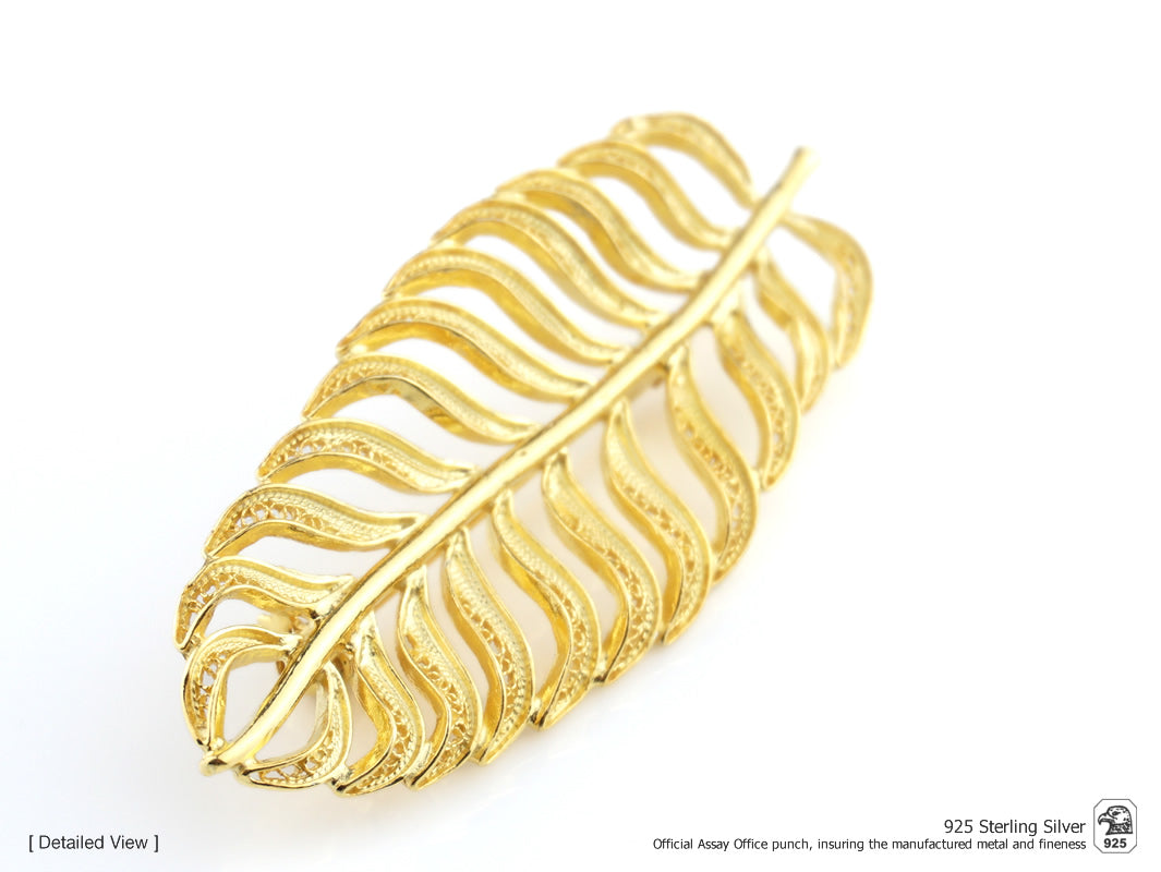 Élégante parure composé de Boucles d'Oreilles et Sautoir avec Feuille Longue. La Médaille peut également être utilisée comme épinglette. Filigrane Portugaise, fabriqué au Portugal en Argent 925 Doré.