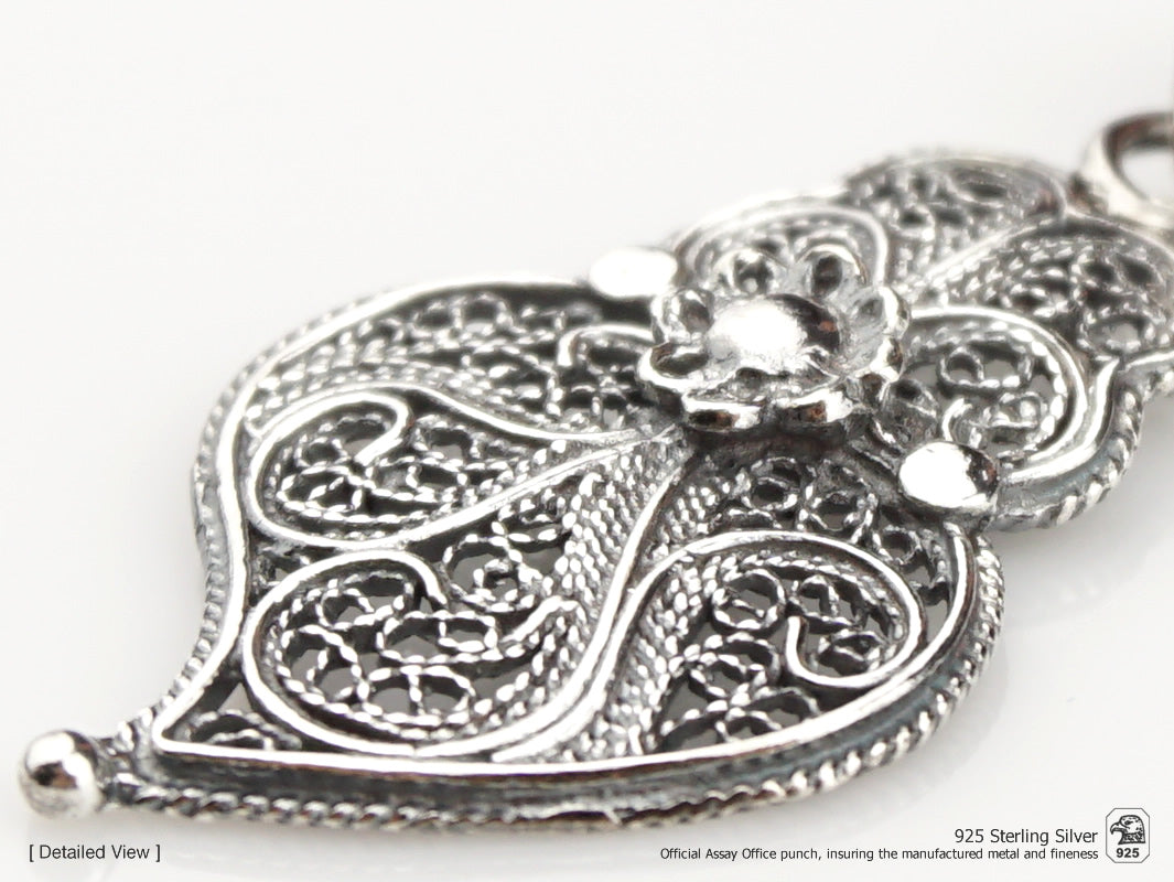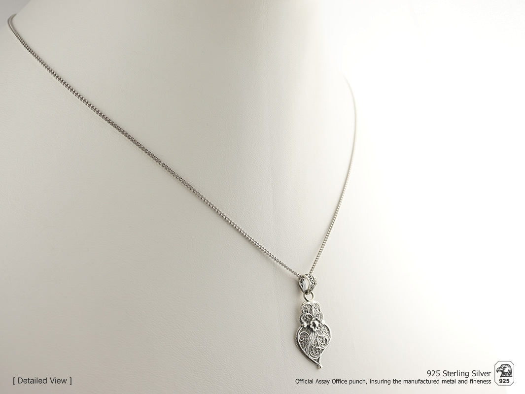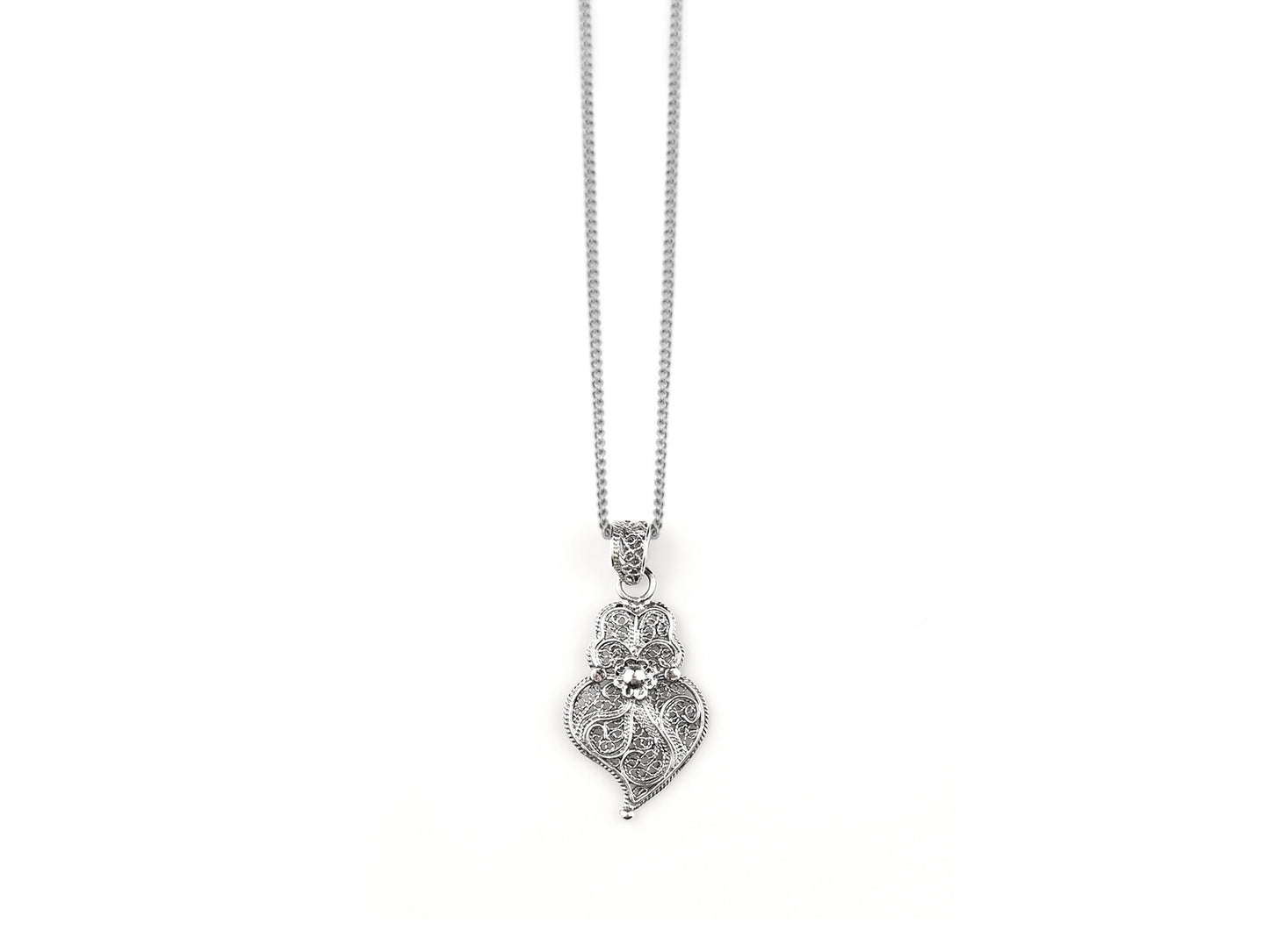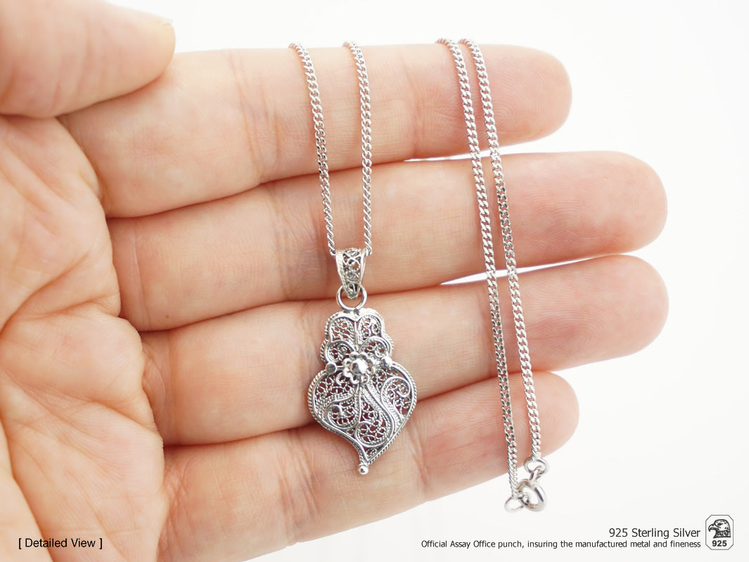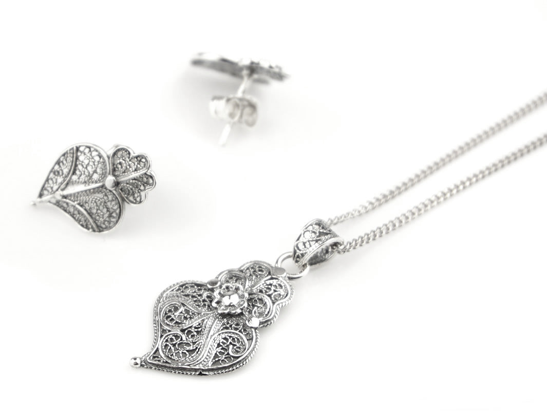 Parure Petit Coeur de Viana, Boucles d'Oreilles et Collier, Filigrane Portugaise, Argent 925