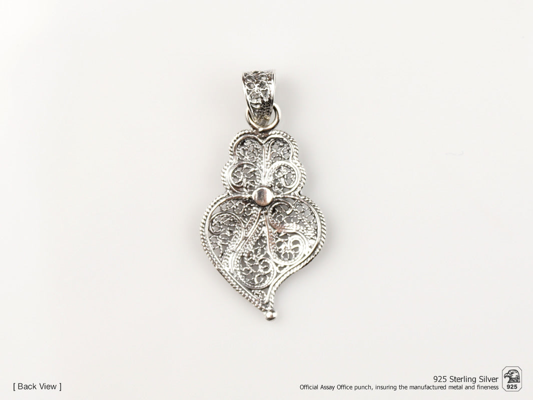 Élégante Parure "Petit Coeur de Viana" composé par Boucles d'Oreilles à poussette et Collier avec chaine réglable. Filigrane Portugaise, fabriqué au Portugal en Argent 925.