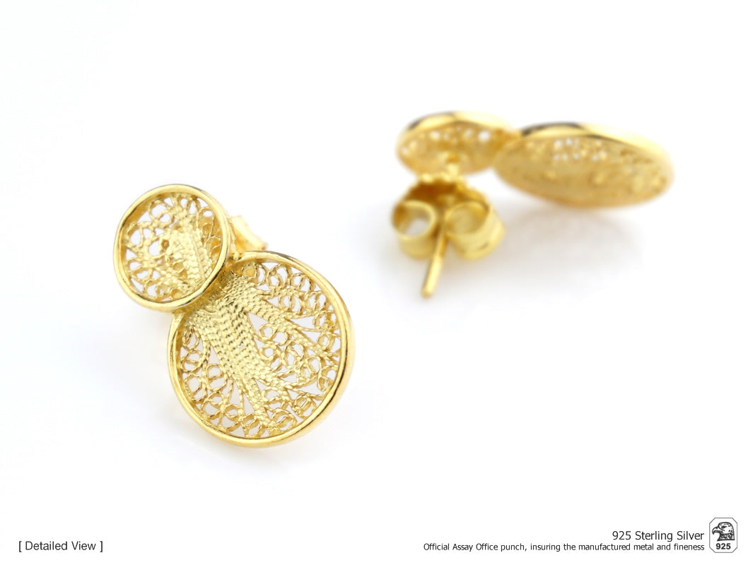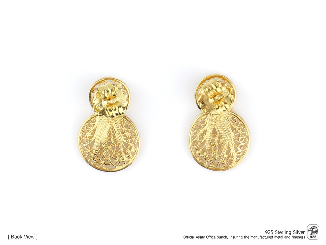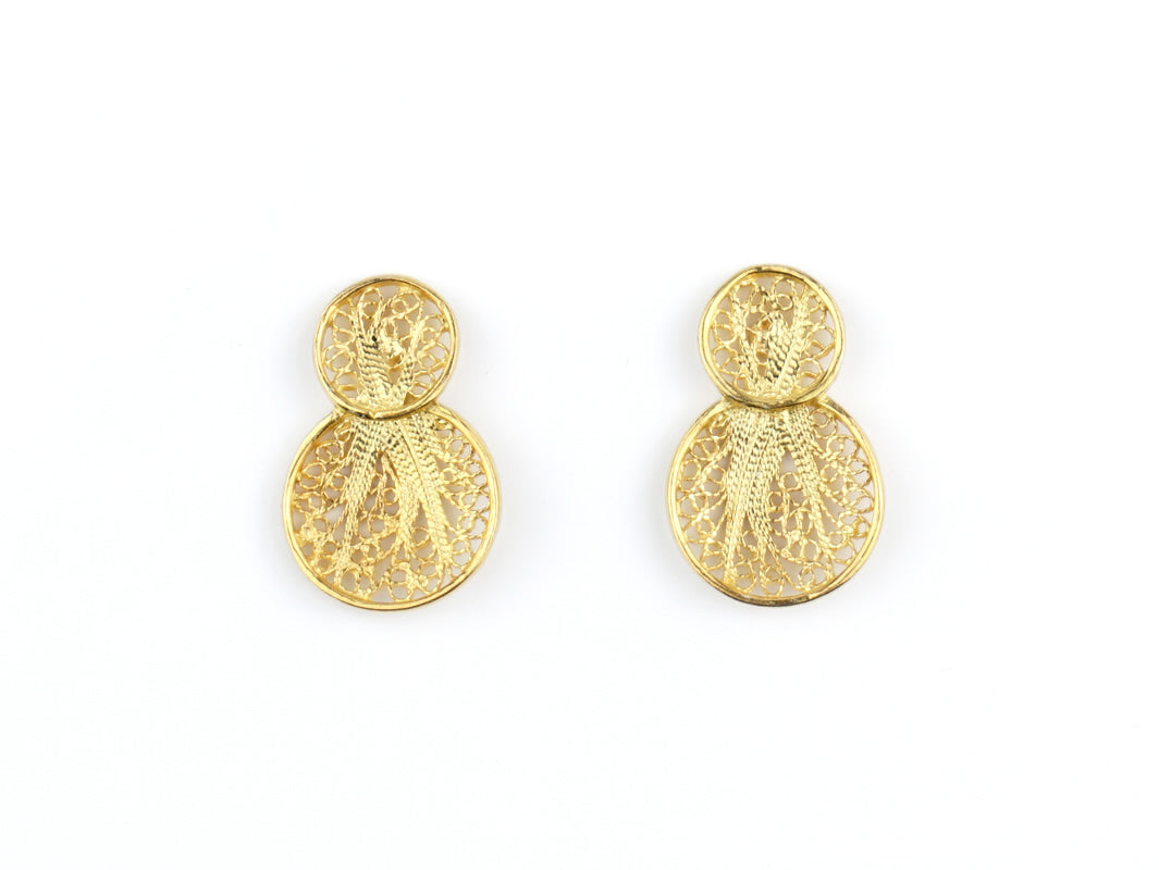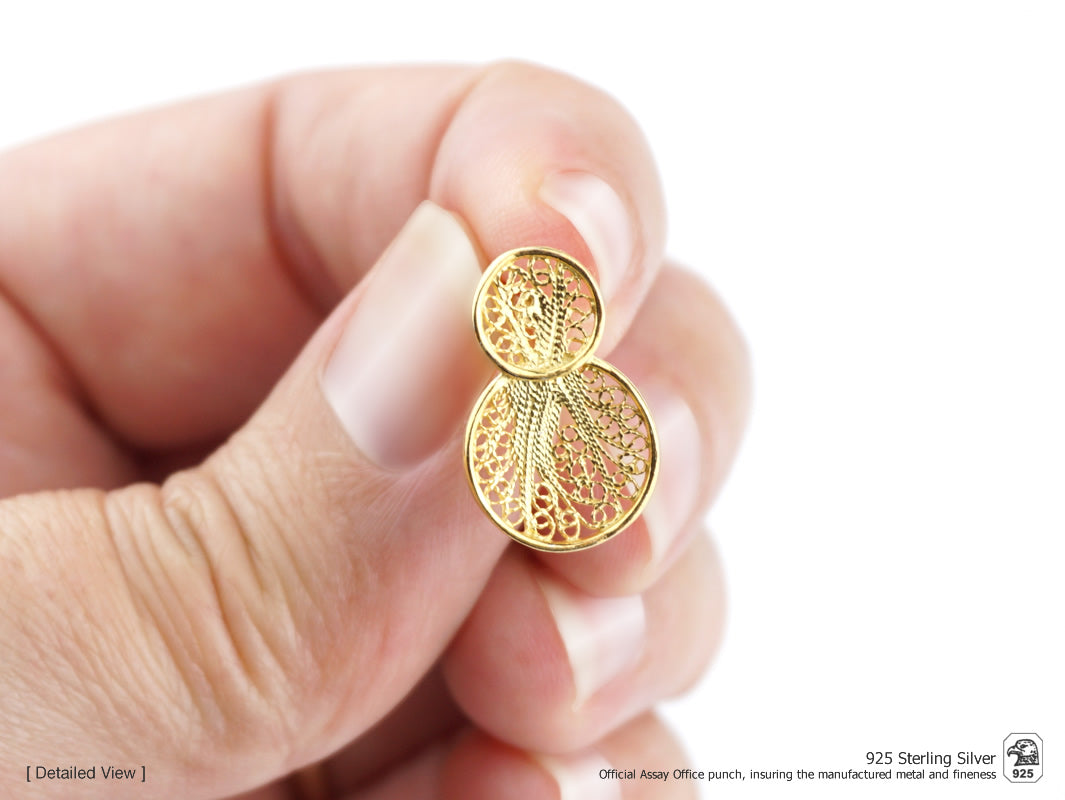 Boucles D'Oreilles Petites Cercles, Filigrane Portugaise, Argent 925 Doré