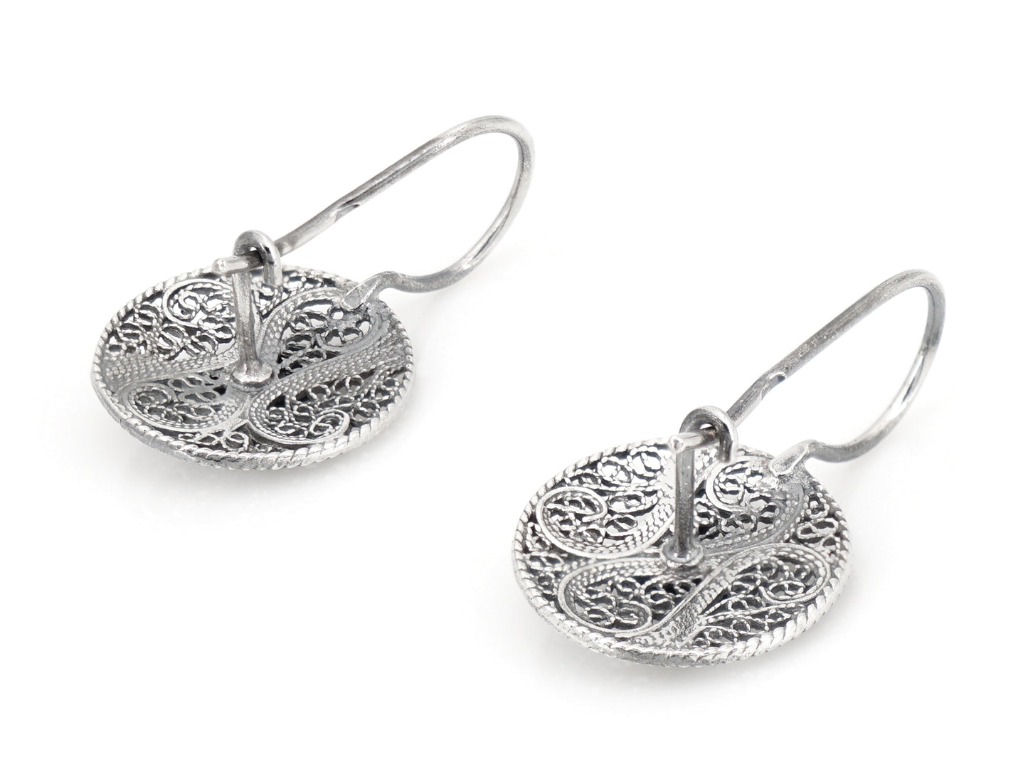 Boucles d'Oreilles Rondes avec Émail, Filigrane Portugaise, Argent 925