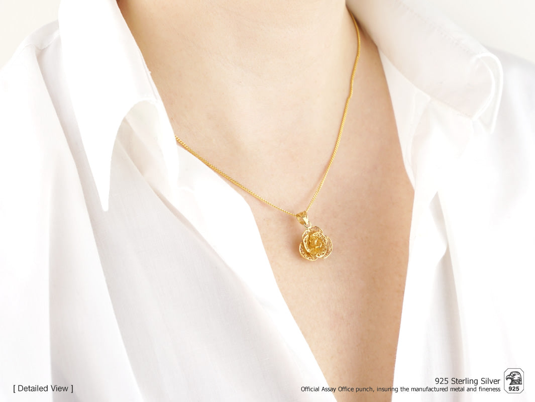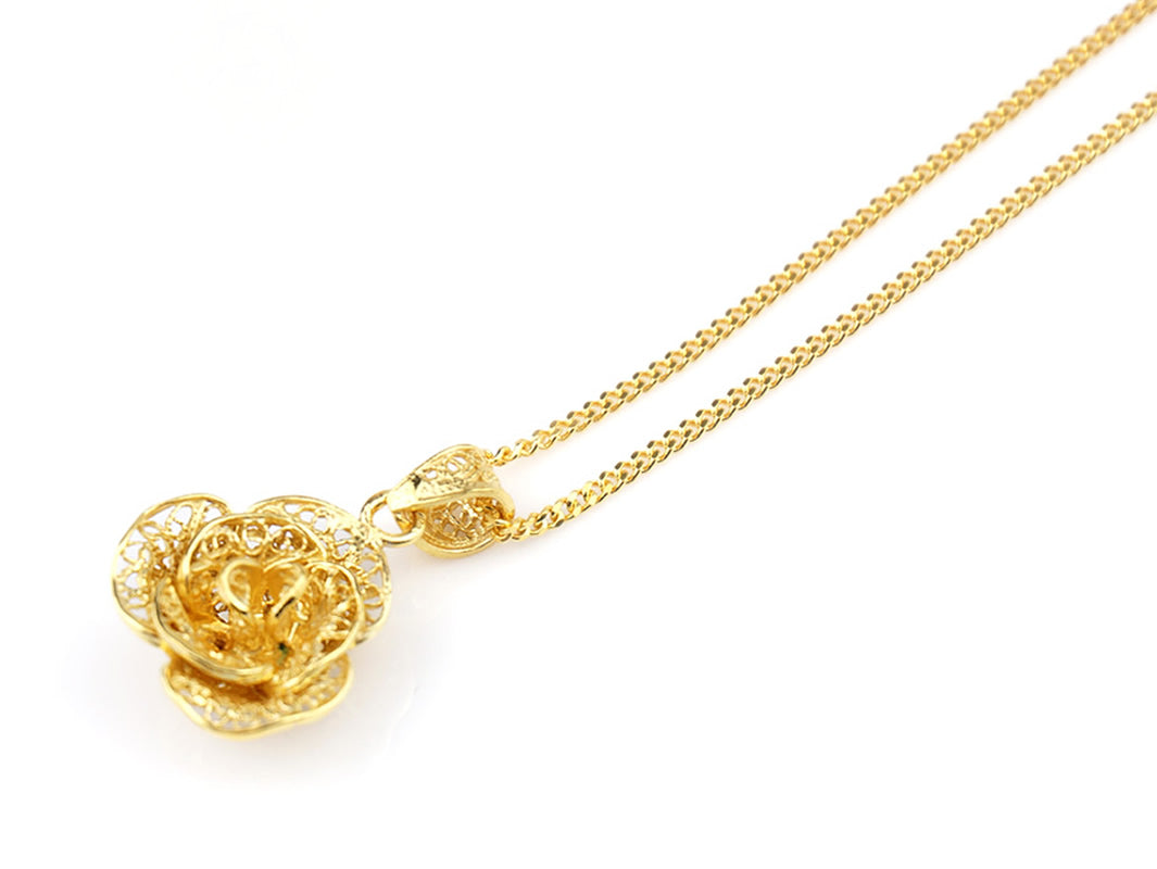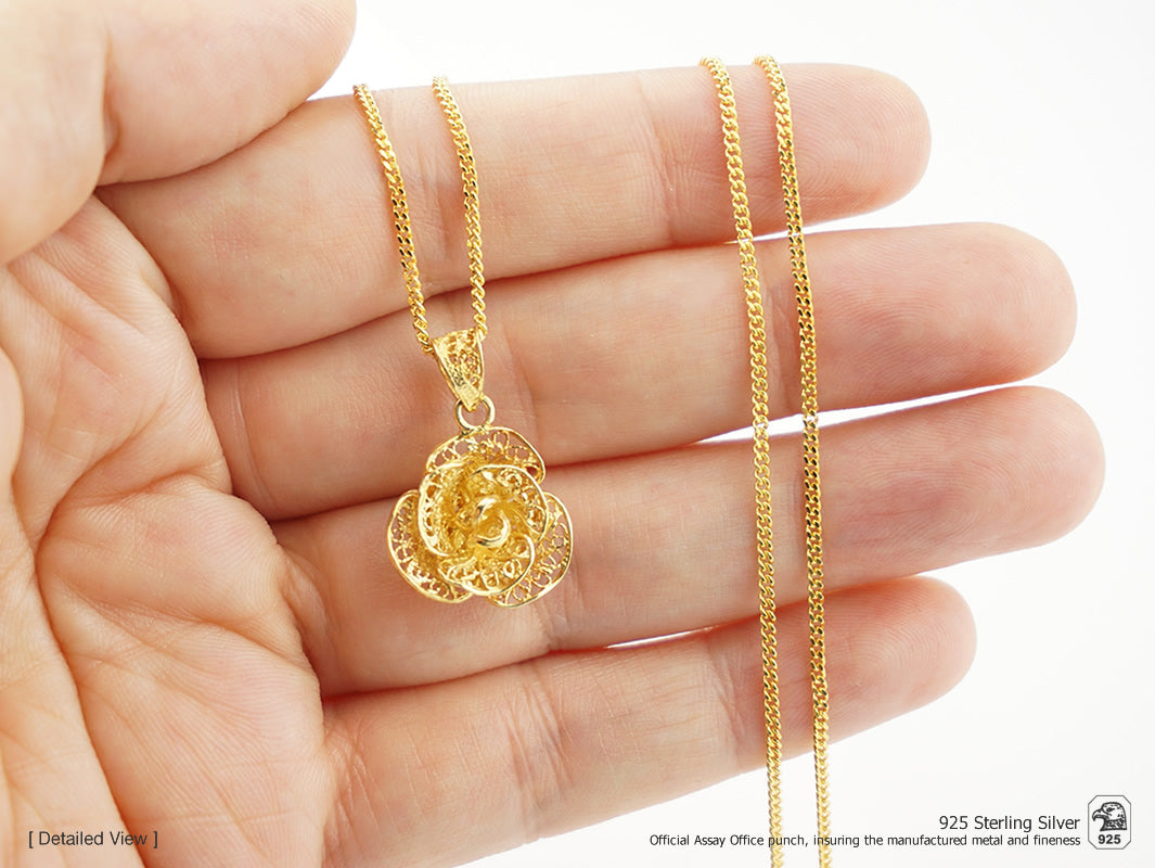 Parure Fleurs Élaborées, Boucles d'Oreilles, Bague et Collier, Filigrane Portugaise, Argent 925 Doré