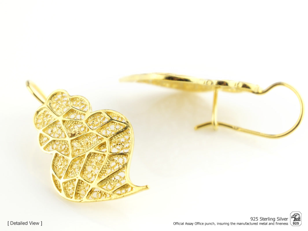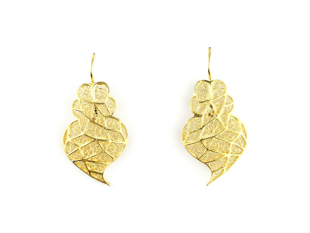 Boucles D’Oreilles Coeur de Viana Géométrique, Filigrane Portugais, Argent 925 Doré