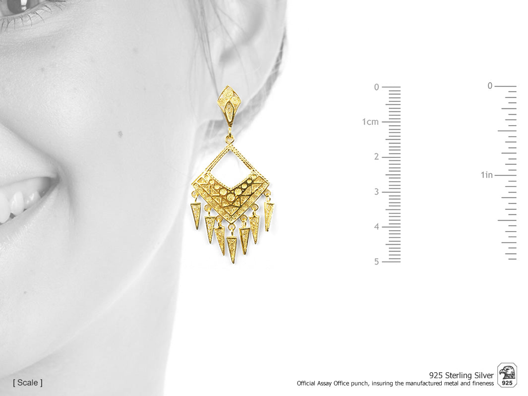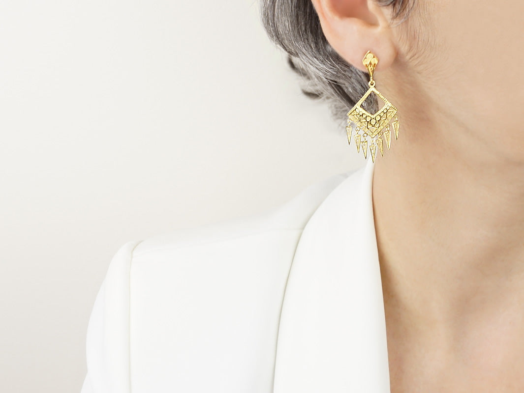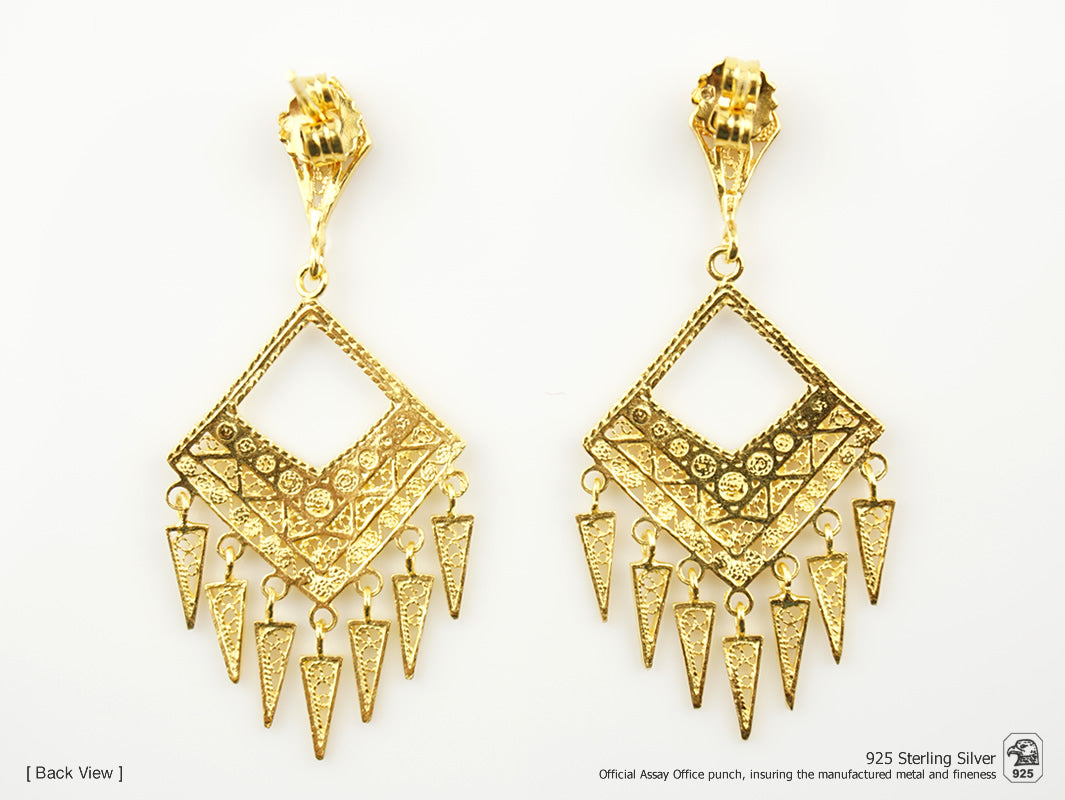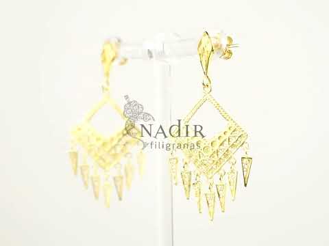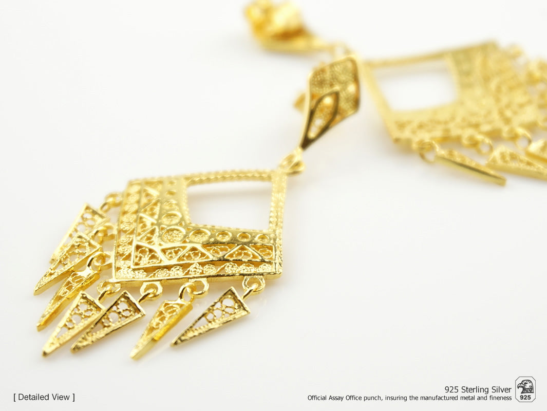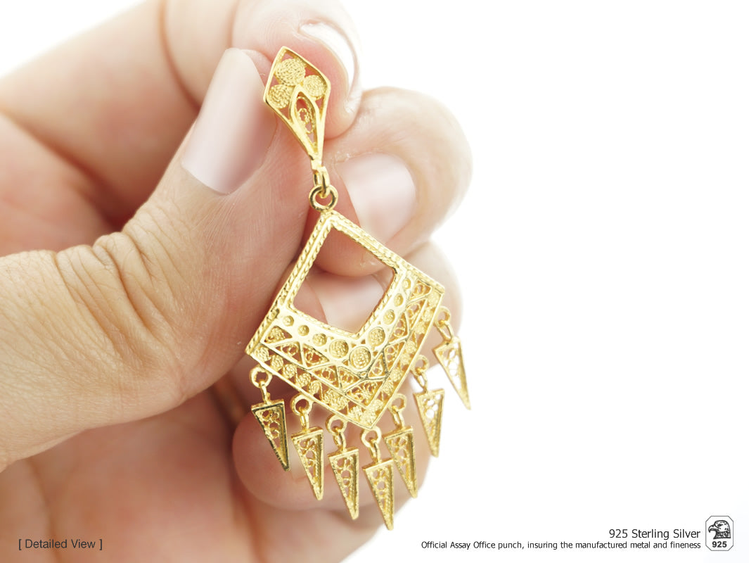 Boucles d'Oreilles à Franges, Filigrane Portugaise, Argent 925 Doré