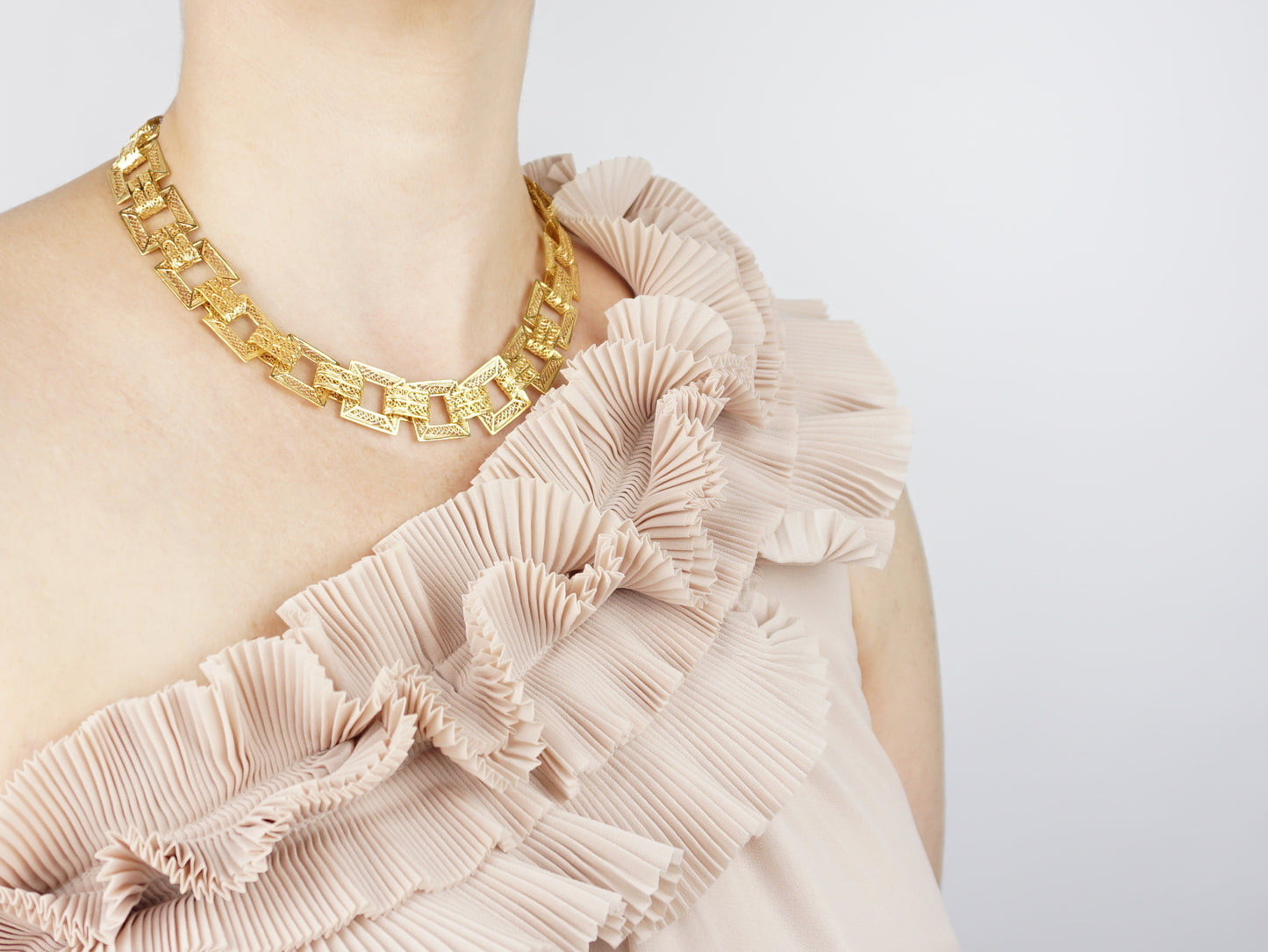Élégante Parure "Carrés", composé par Collier et Bracelet. Filigrane Portugaise, Fabriqué au Portugal en Argent 925 Doré.