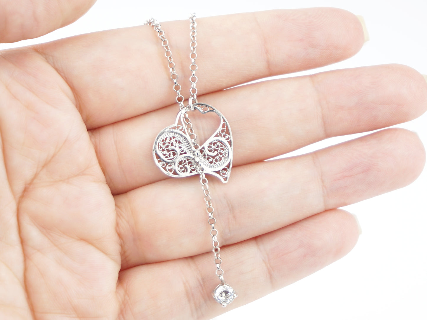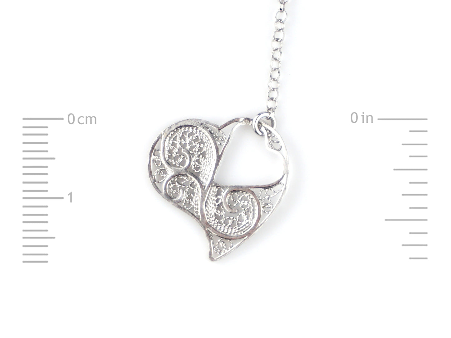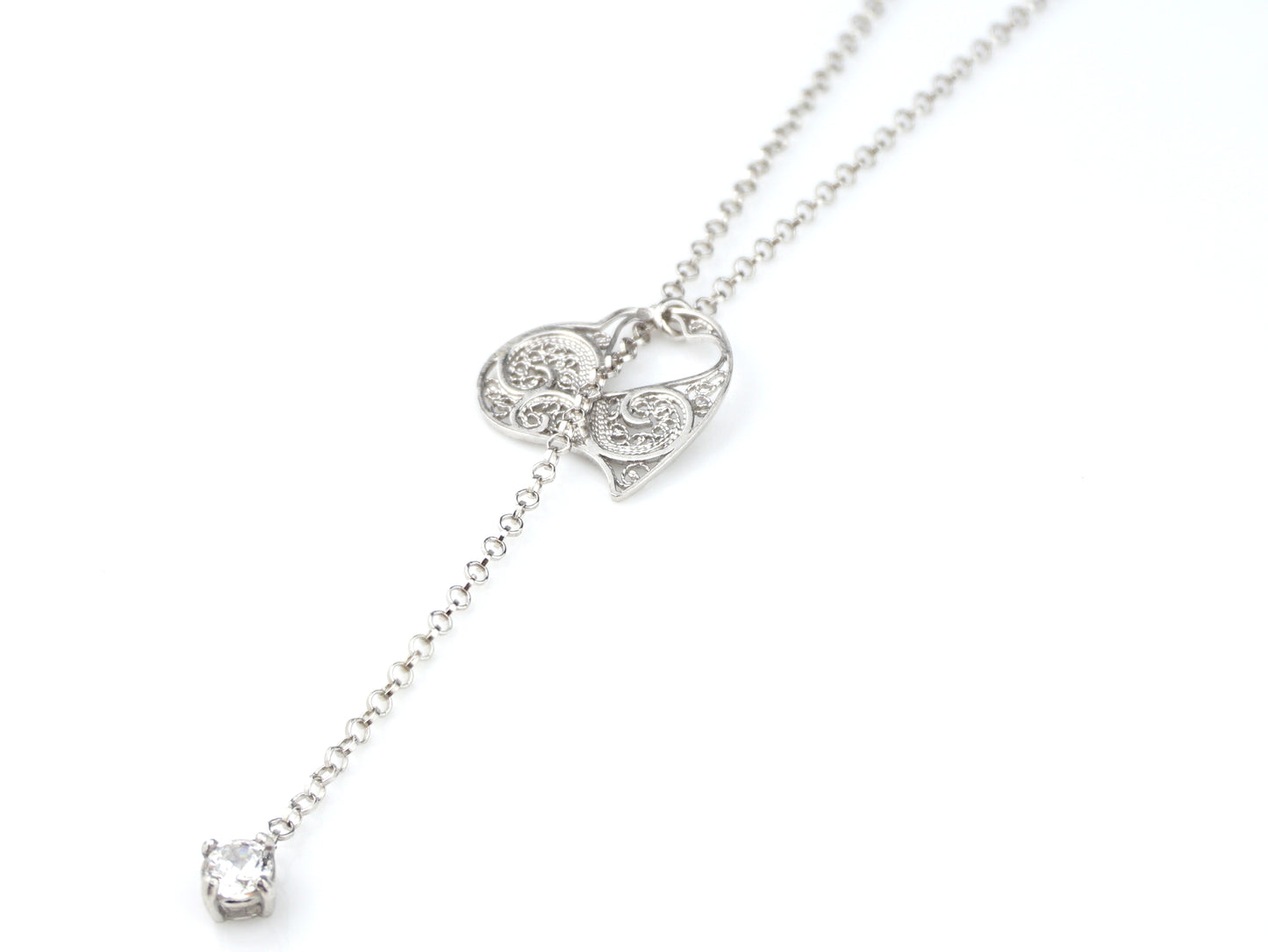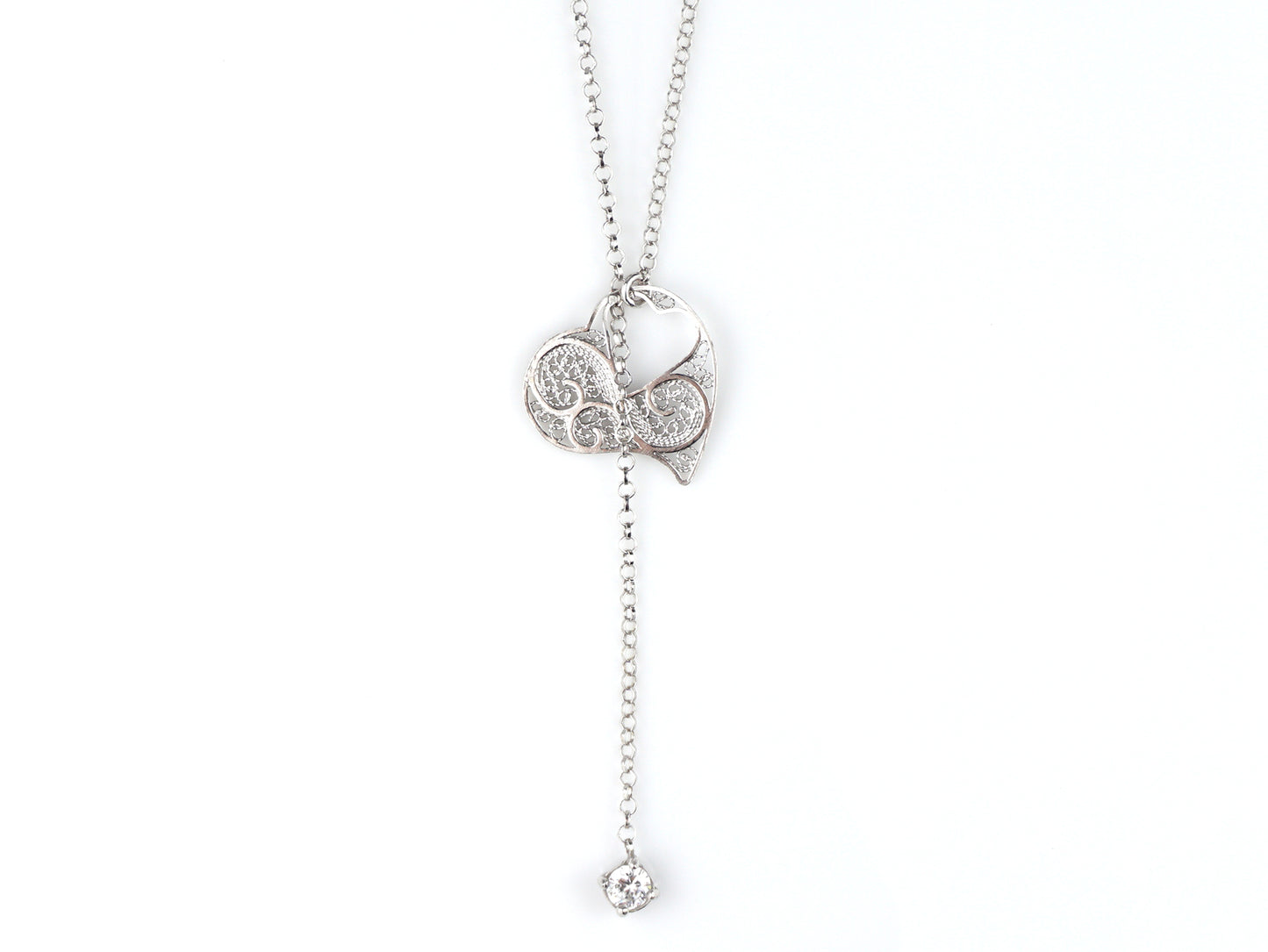 Collier Coeur et Zircone, Filigrane Portugaise, Argent 925 Rhodié