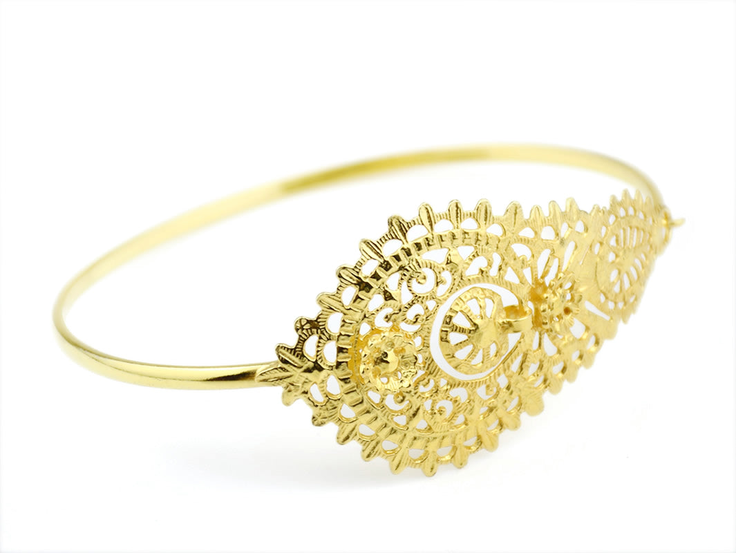 Élégant Bracelet / Manchette Reine ou Vianesa avec Motif Grand. Fabriqué au Portugal en Argent 925 Doré.
