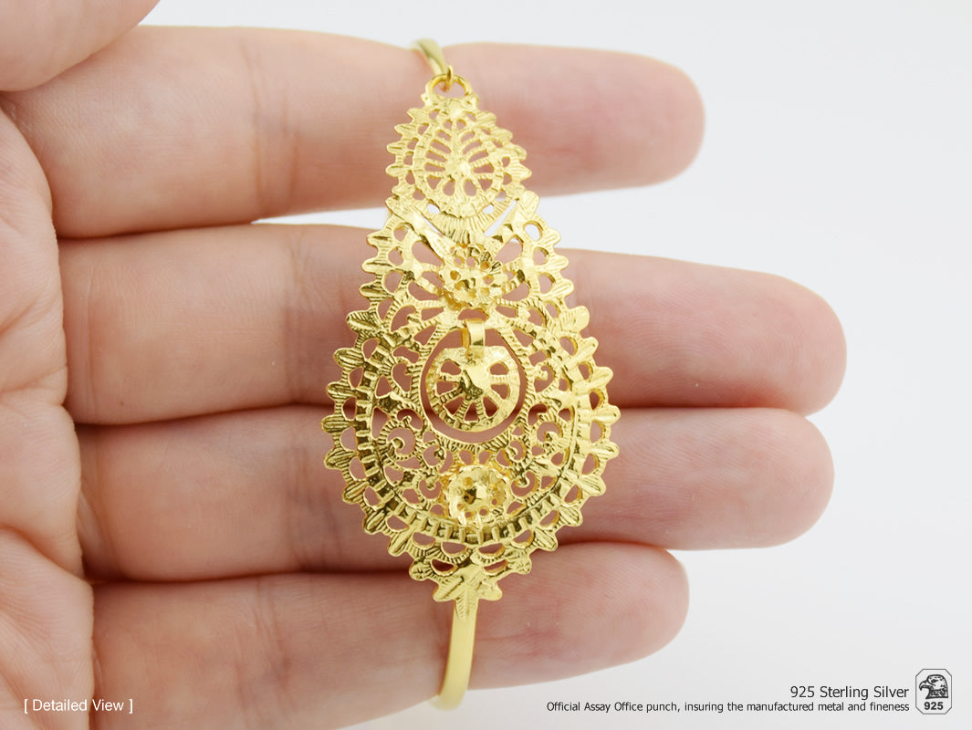 Bracelet Manchette Reine, Motif Grand, Argent 925 Doré