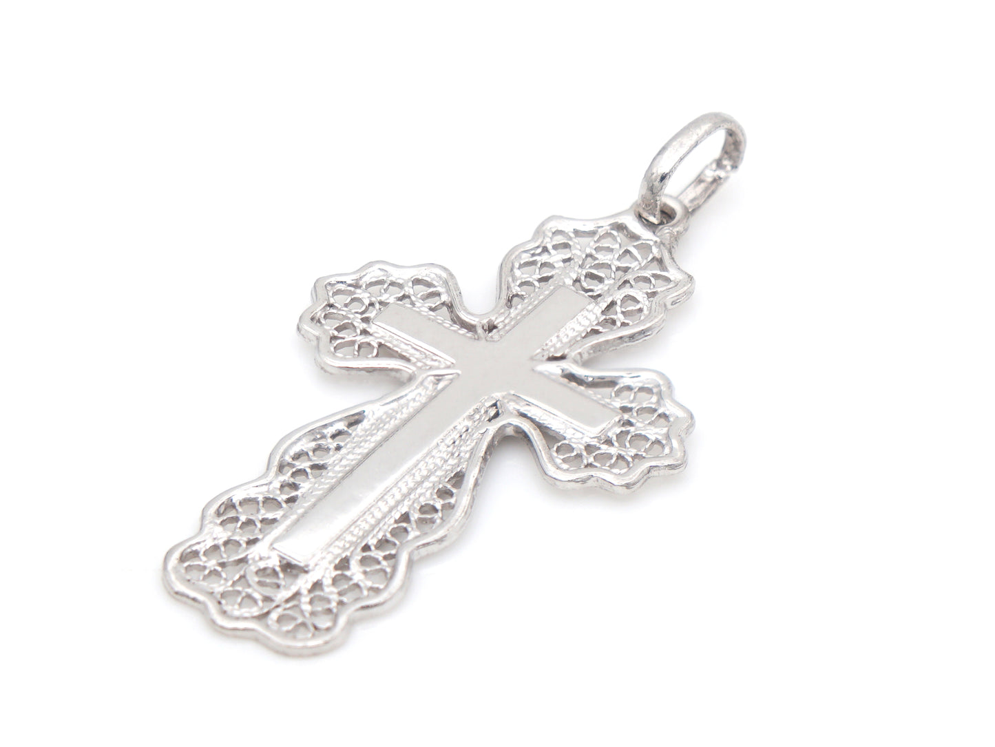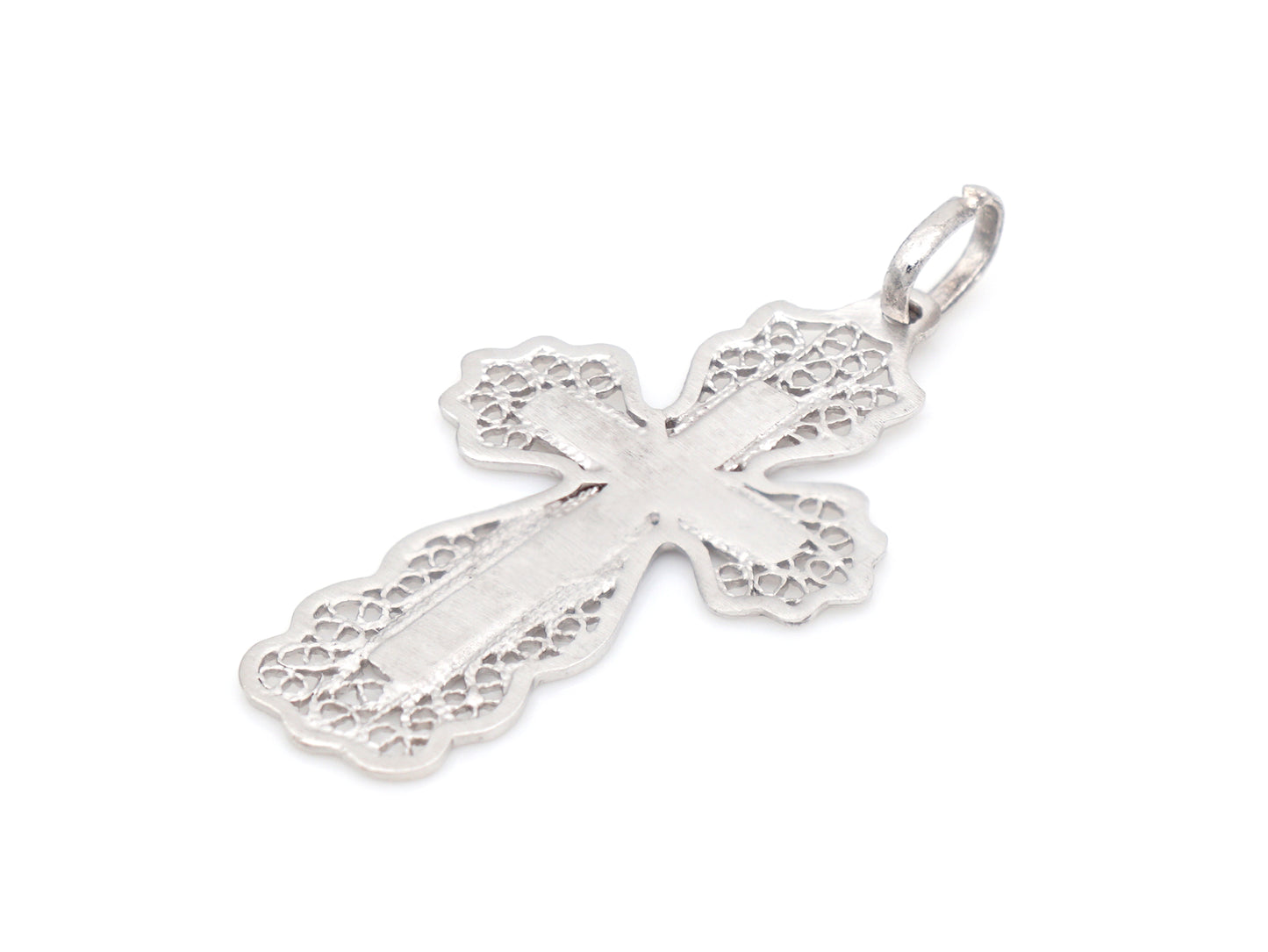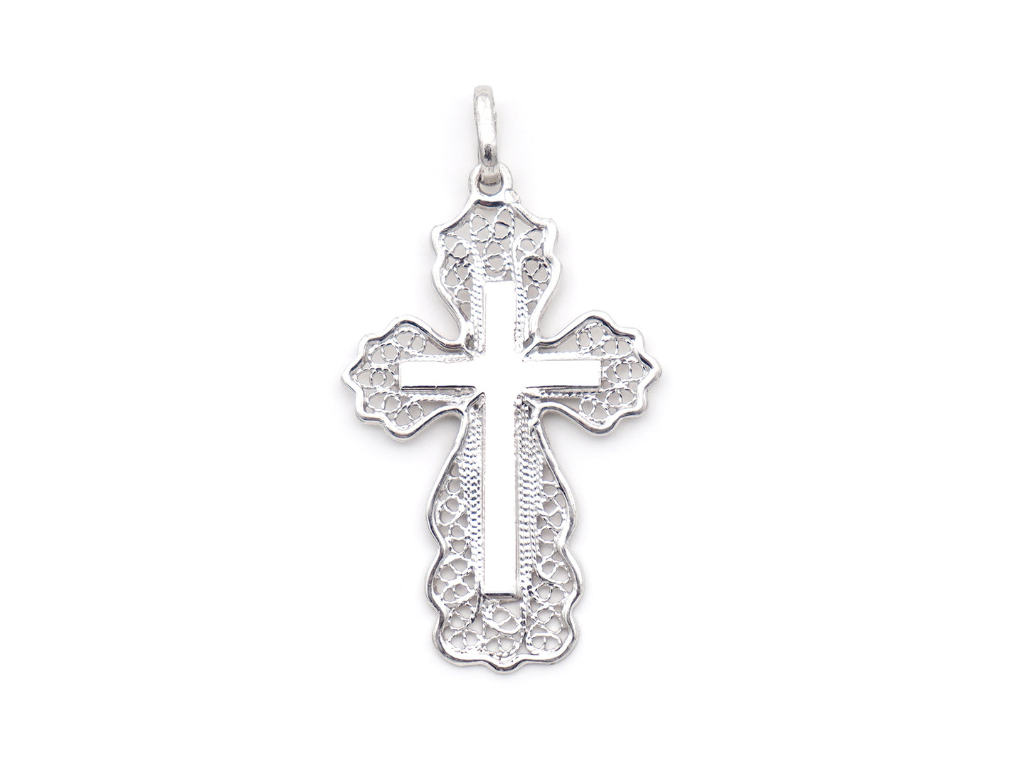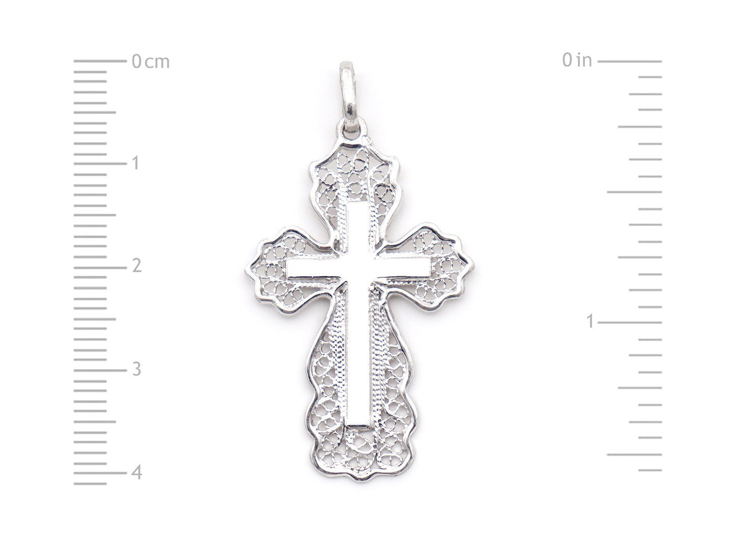 Élégante Médaille Croix Miroir, en Filigrane Portugaise, fabriqué au Portugal en Argent 925 Rhodié.