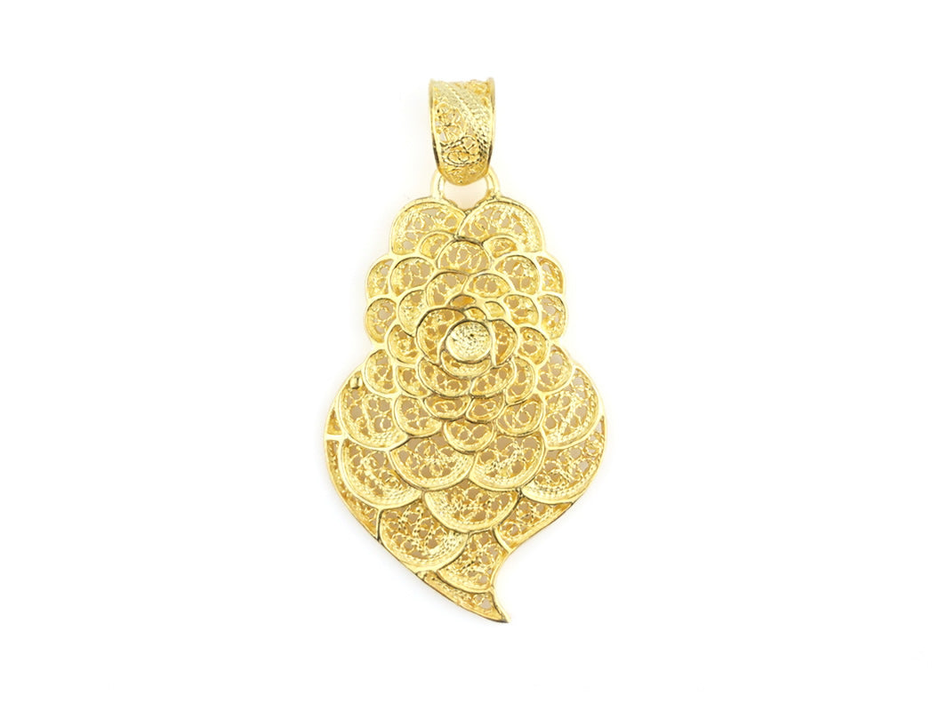 Élégante Médaille Petit Coeur aux Pétales. Filigrane Portugaise, fabriqué au Portugal en Argent 925 Doré.