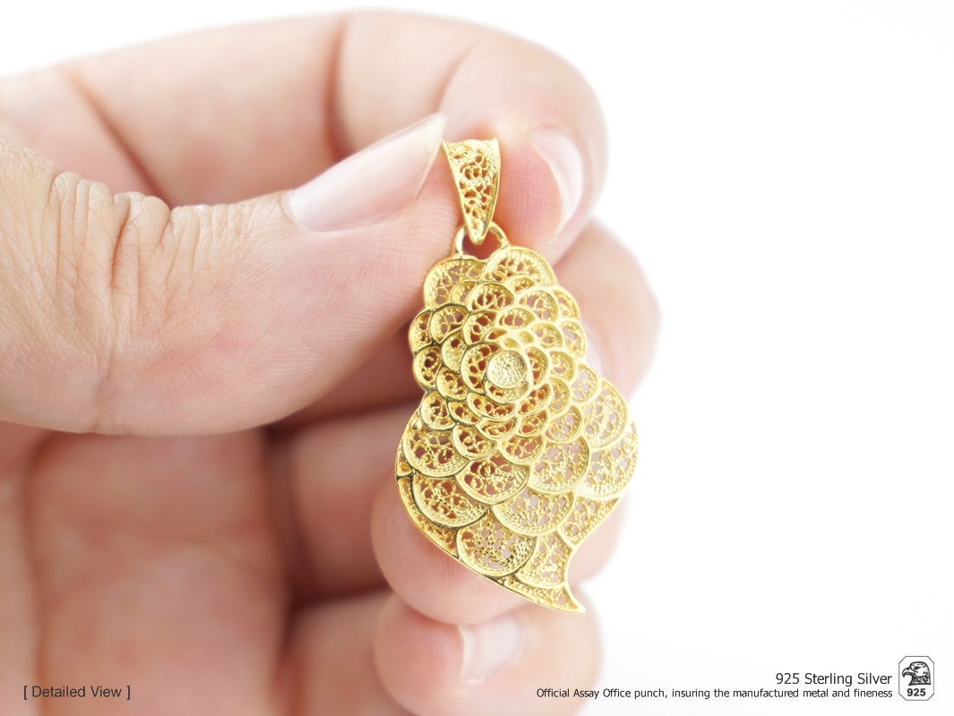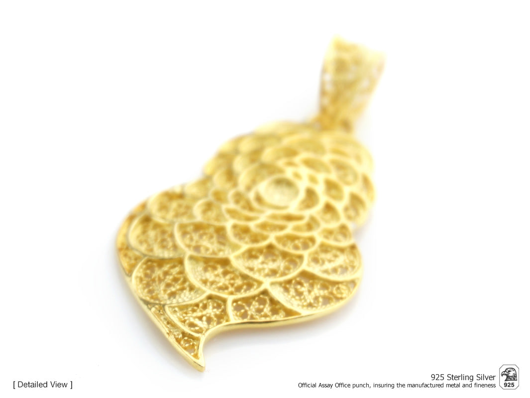 Médaille Petit Coeur aux Pétales, Filigrane Portugaise, Argent 925 Doré