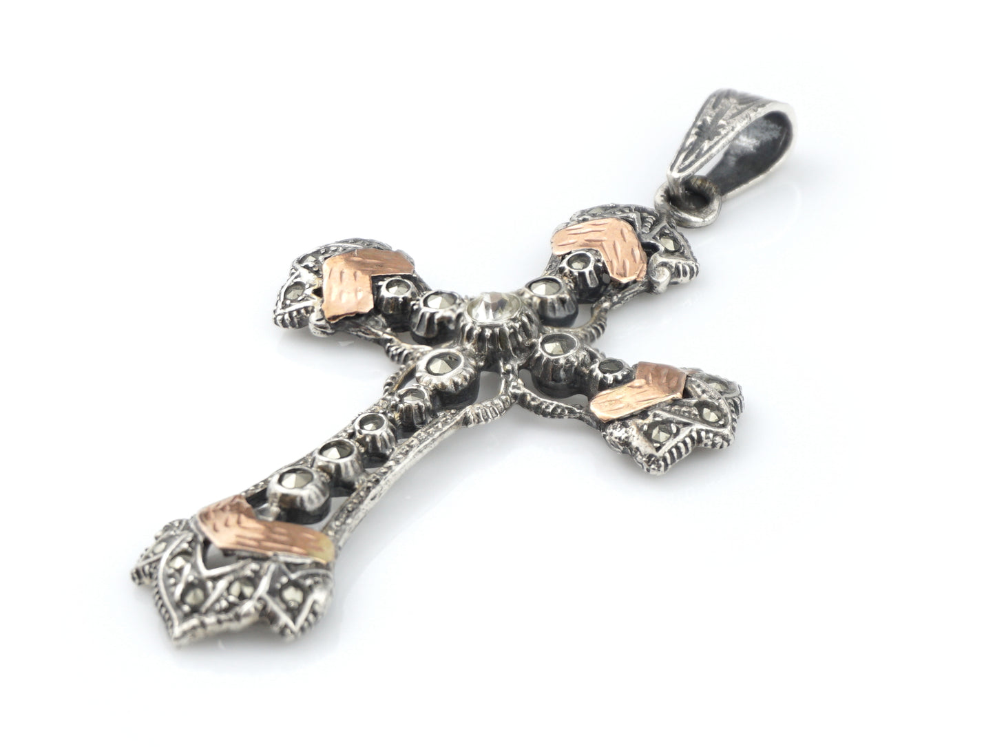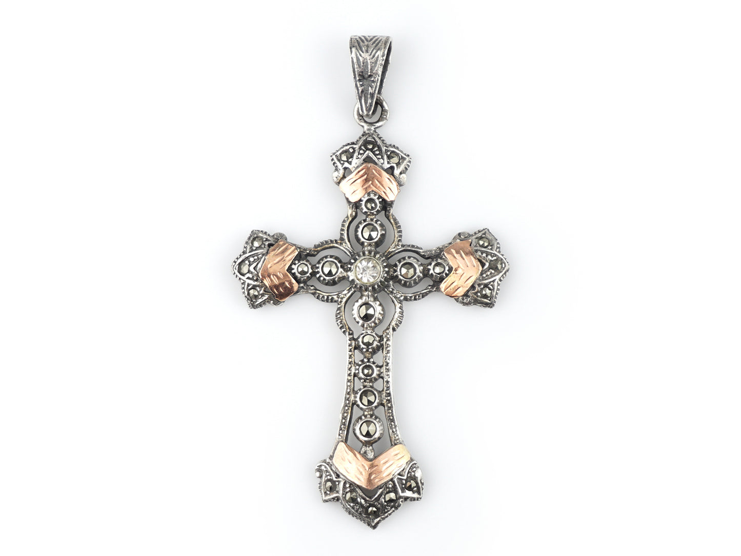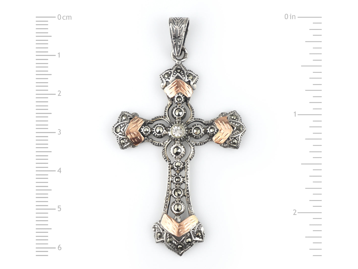 Médaille Grande Croix aux Marcassites et Zircone, Argent 925 et Or 9 Carats