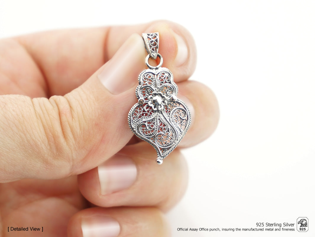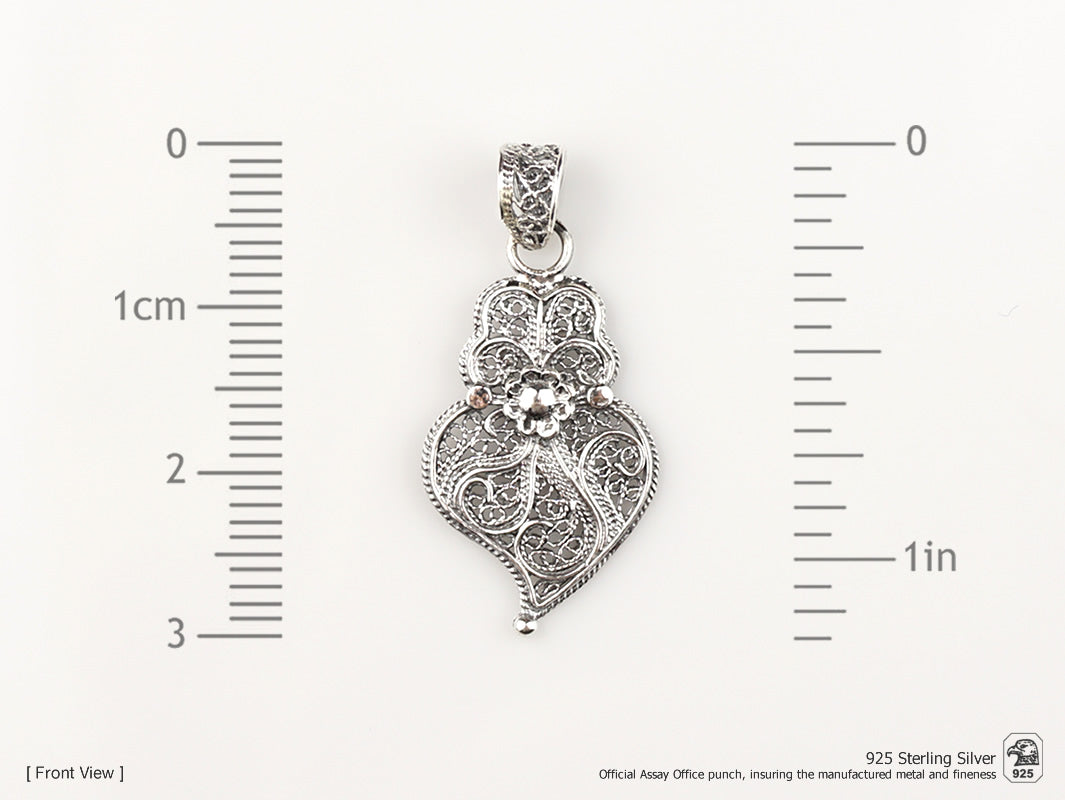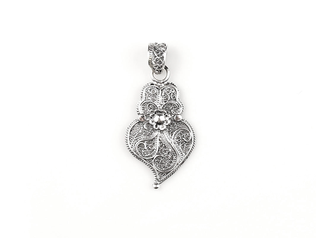 Élégante Médaille Petit Coeur de Viana. Filigrane Portugaise, fabriqué au Portugal en Argent 925.