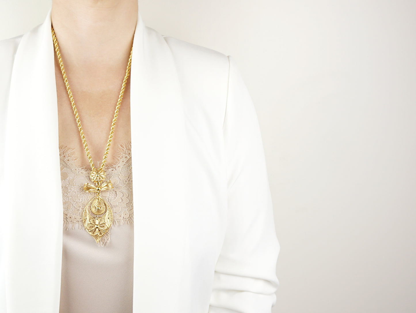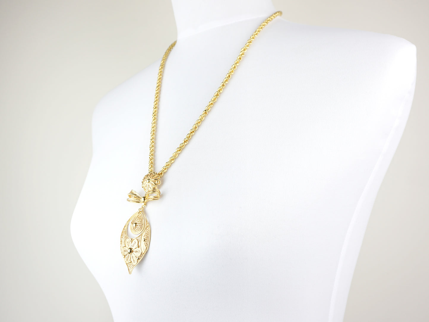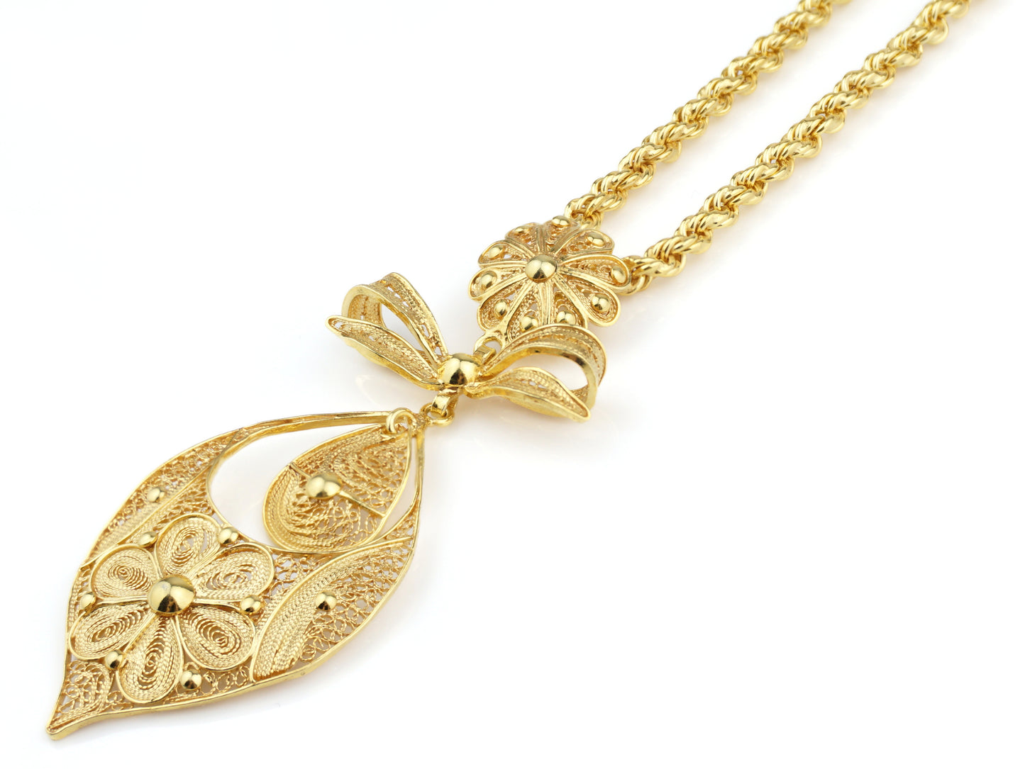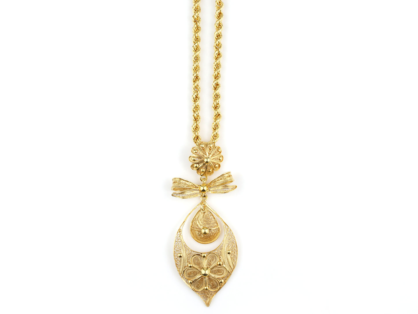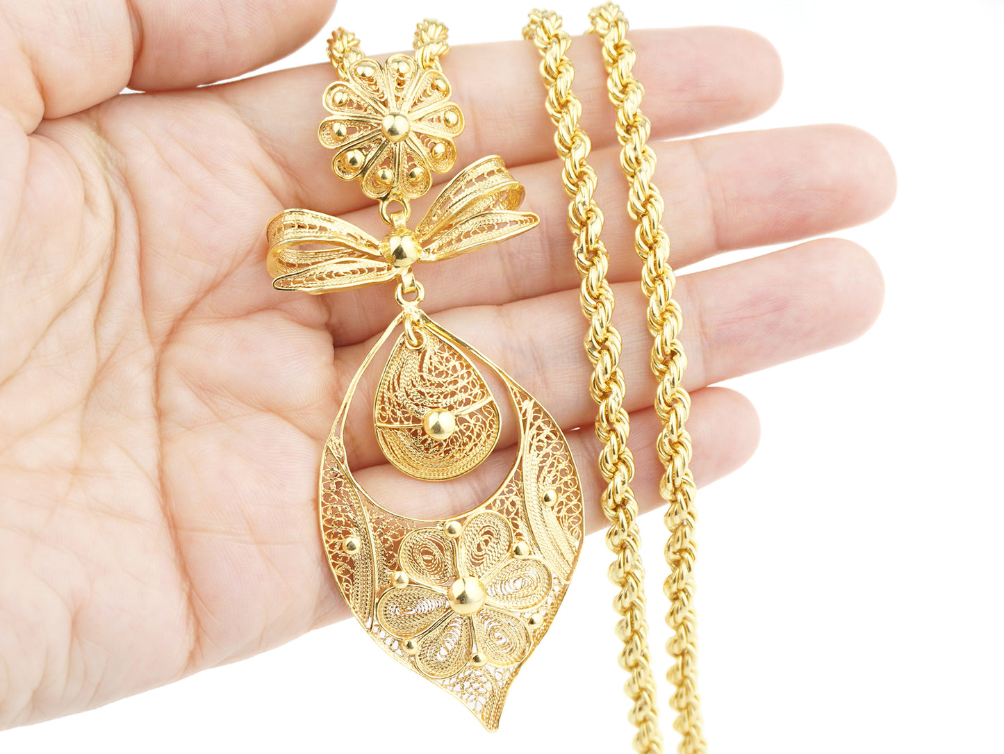 Collier "Corde" à Médaille Riche Princesse Grande, Filigrane Portugaise, Argent 925 Doré