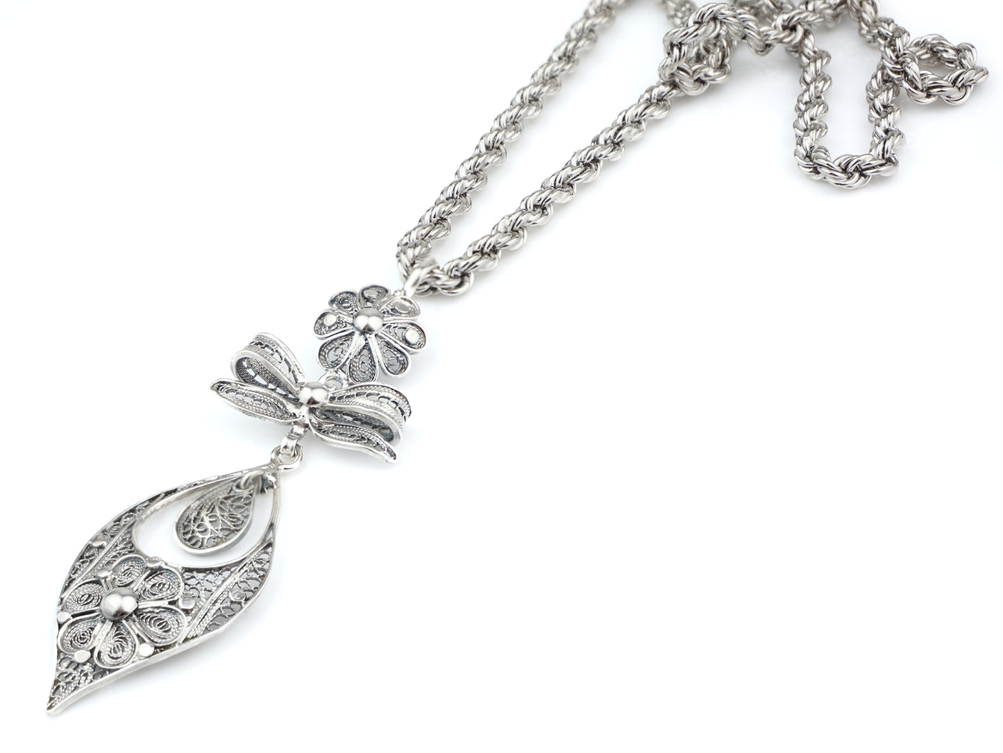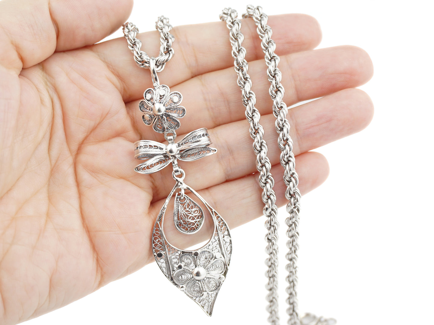 Collier "Corde" à Médaille Princesse Riche Moyenne, Filigrane Portugaise, Argent 925