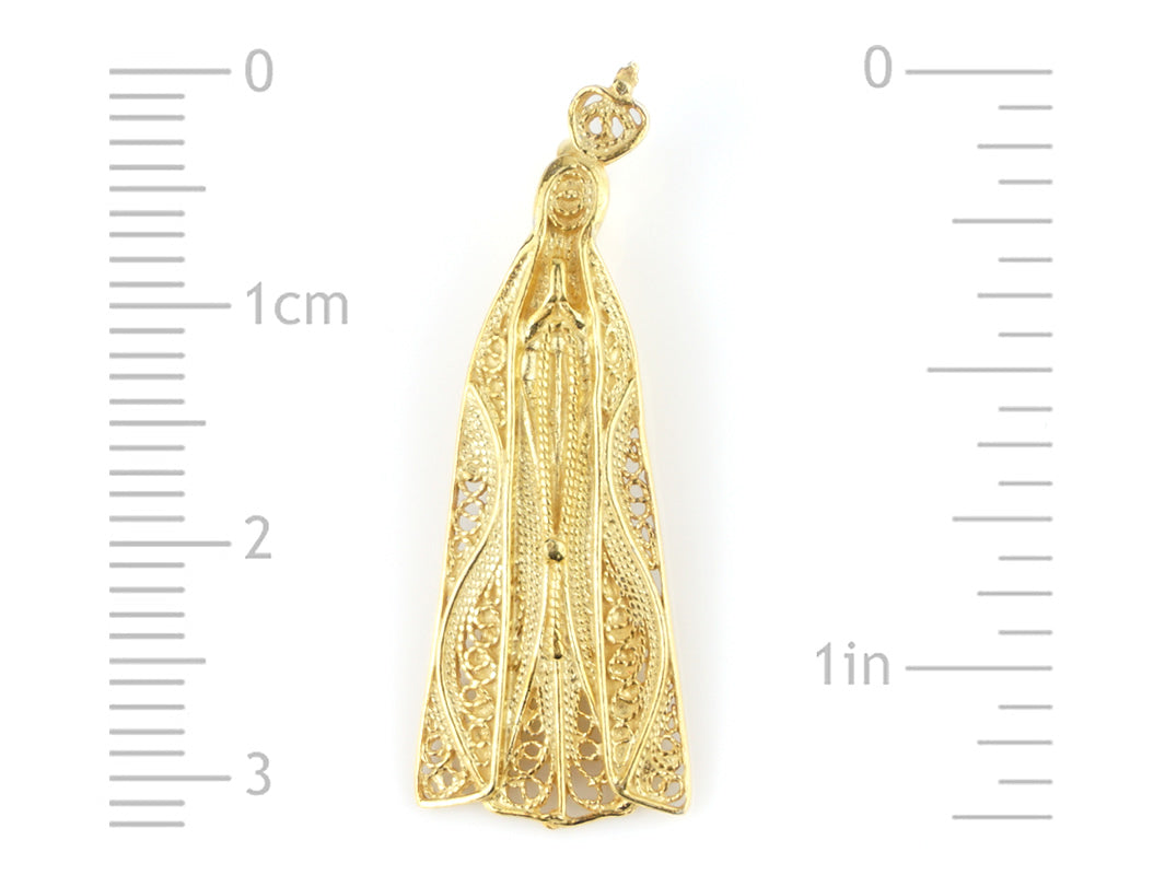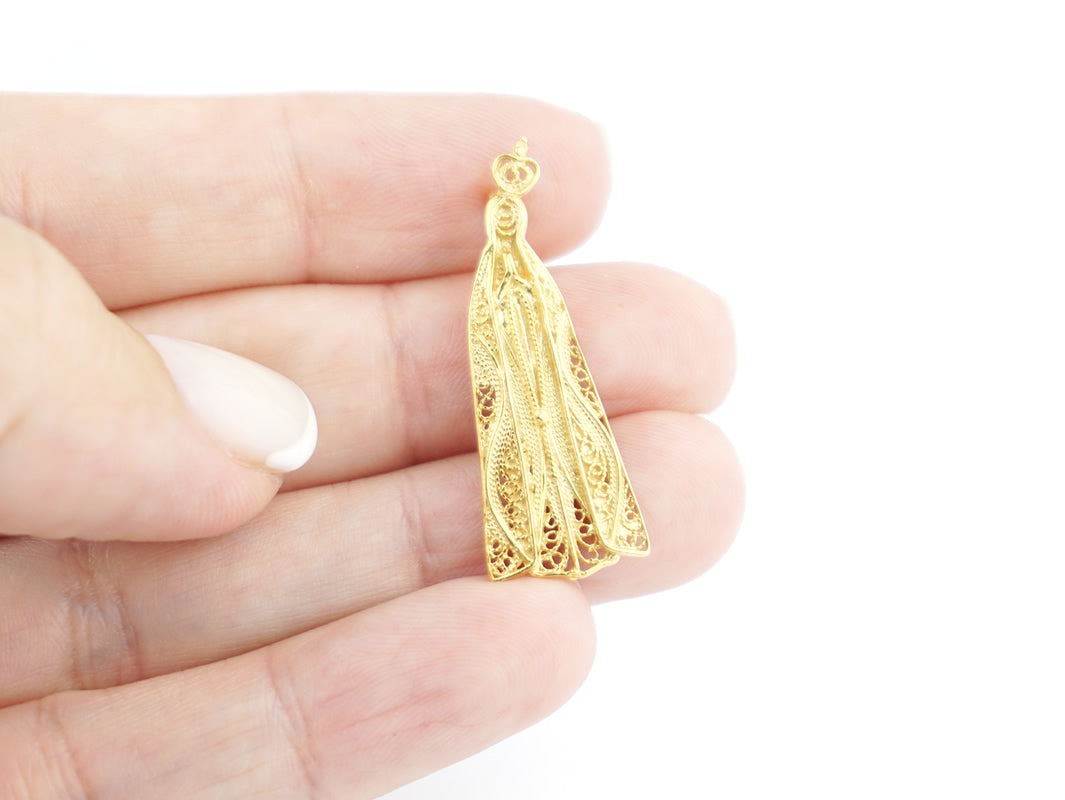Élégant médaille Notre-Dame de Fátima. Filigrane Portugaise, fabriqué au Portugal en Argent 925 Doré.