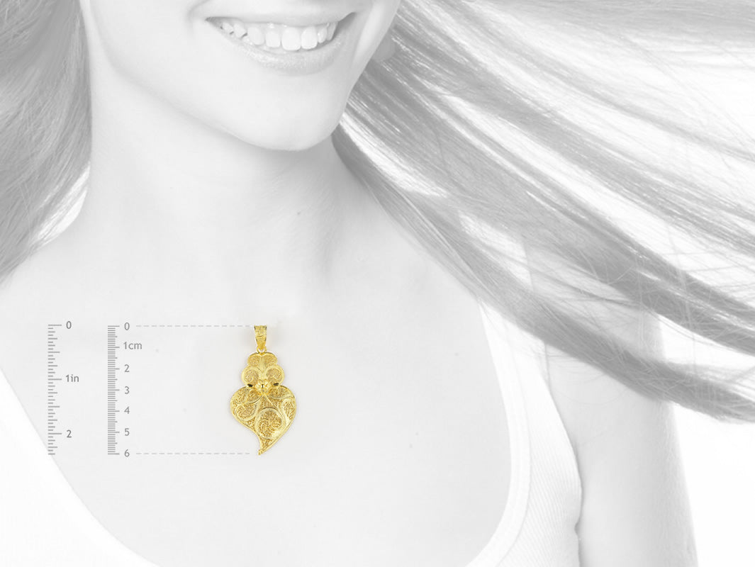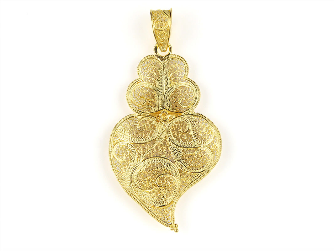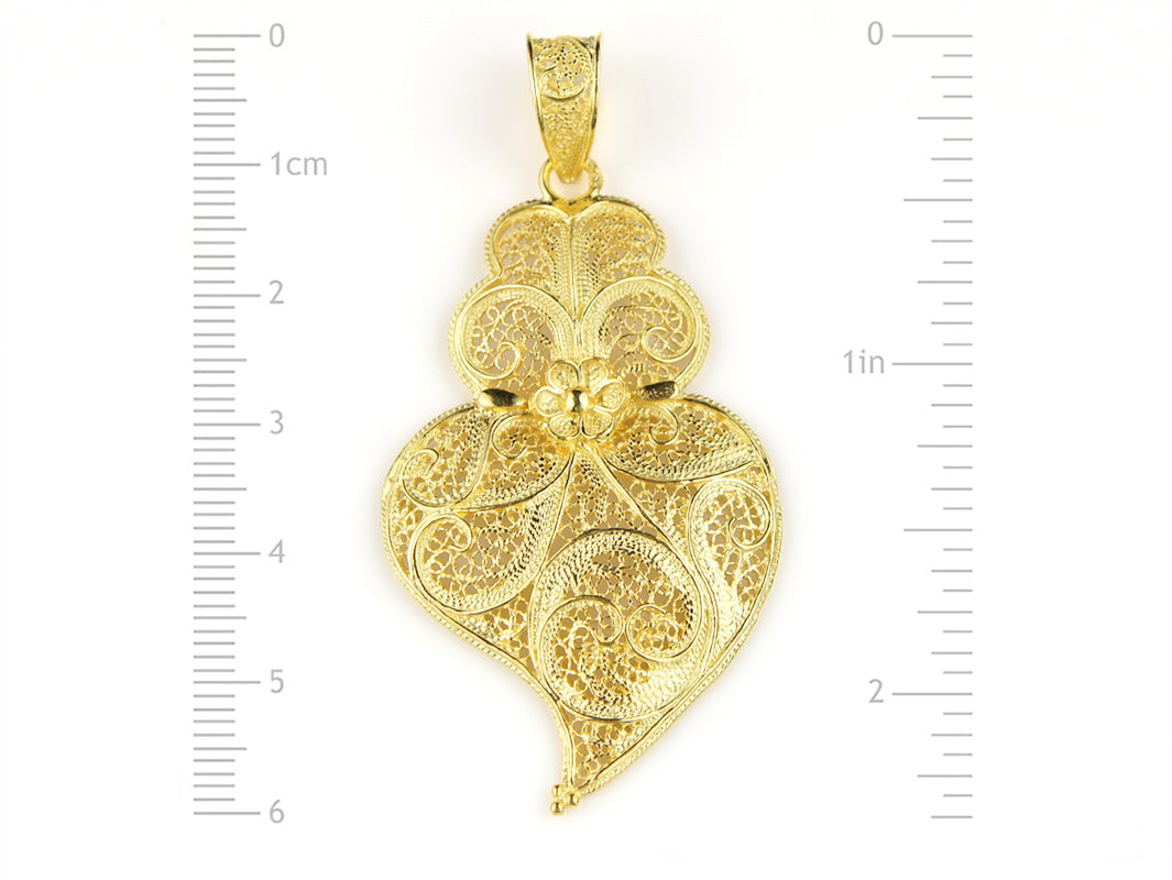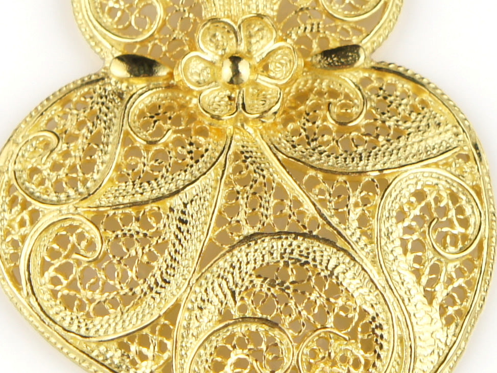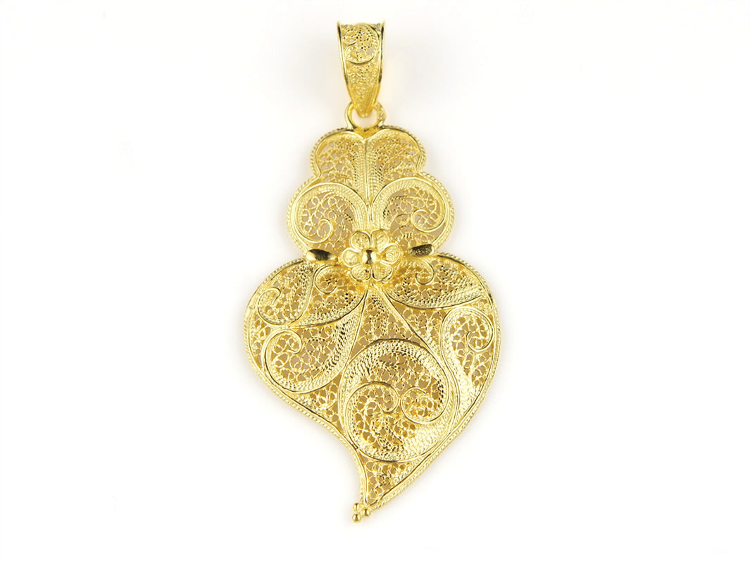 Élégante Médaille Coeur de Viana moyen. Filigrane Portugaise, fabriqué au Portugal en Argent 925 Doré.
