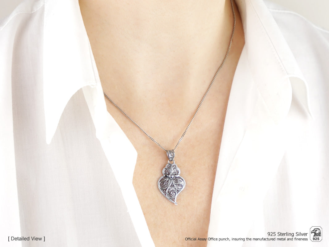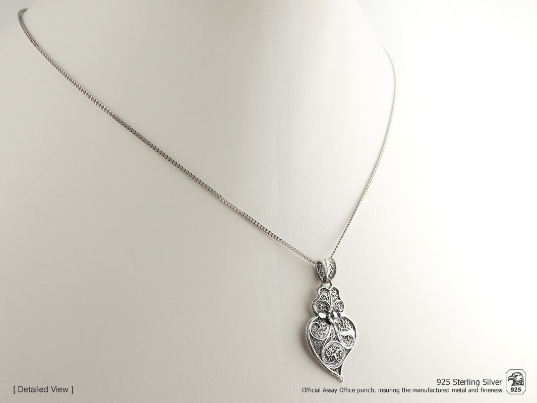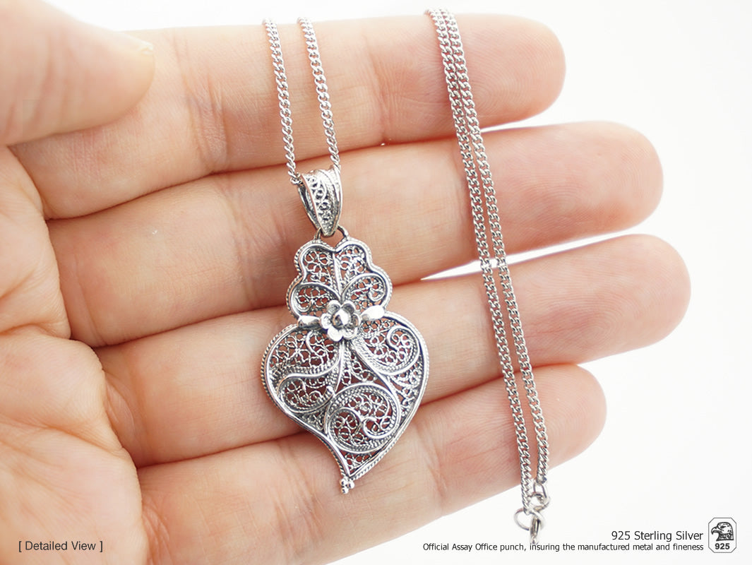 Collier avec Petit Coeur de Viana, Filigrane Portugaise, Argent 925