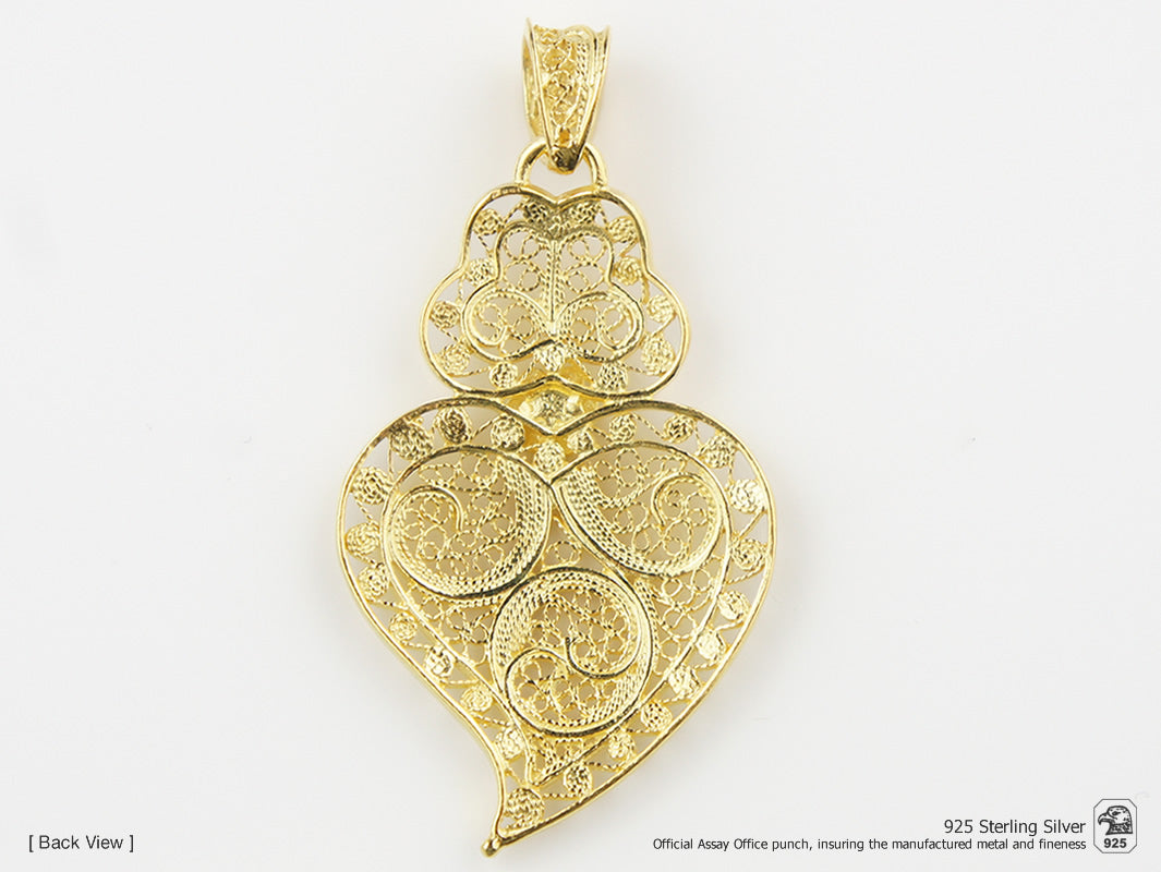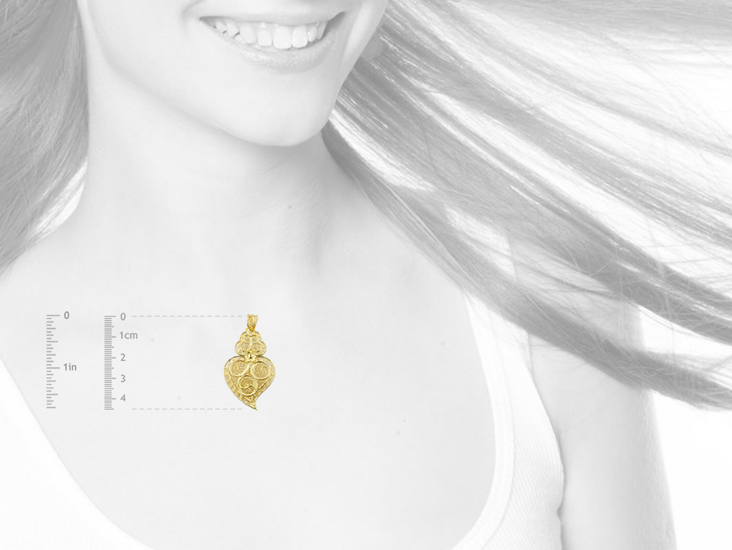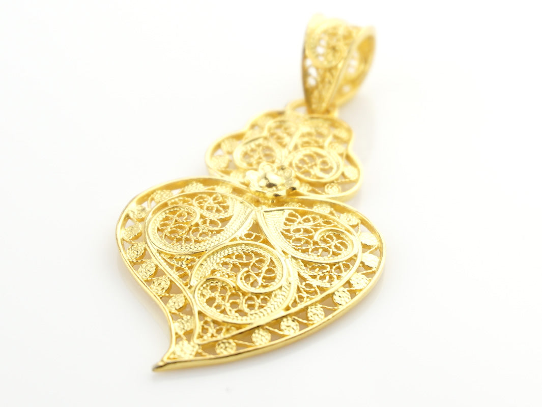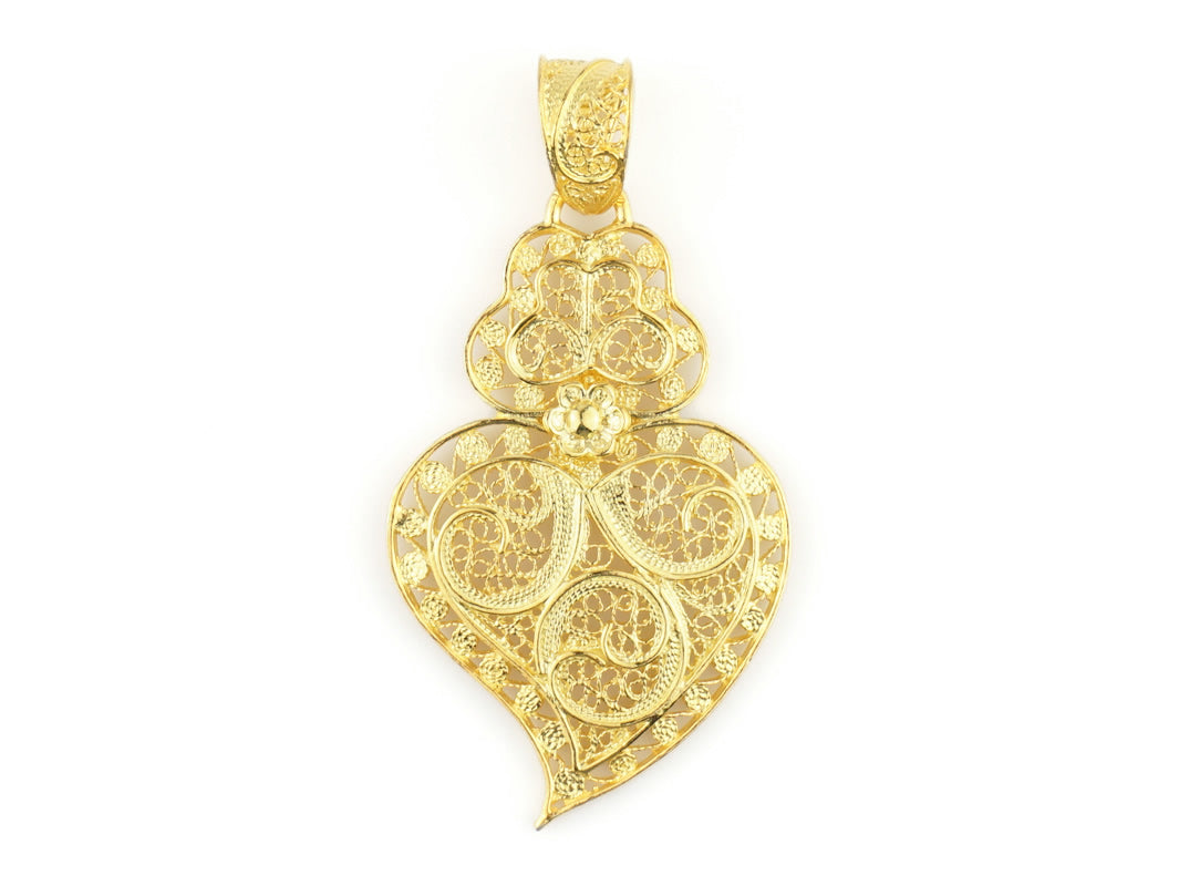 Élégante Médaille Petit Coeur de Viana Encadré. Filigrane Portugaise, fabriqué au Portugal en Argent 925 Doré.