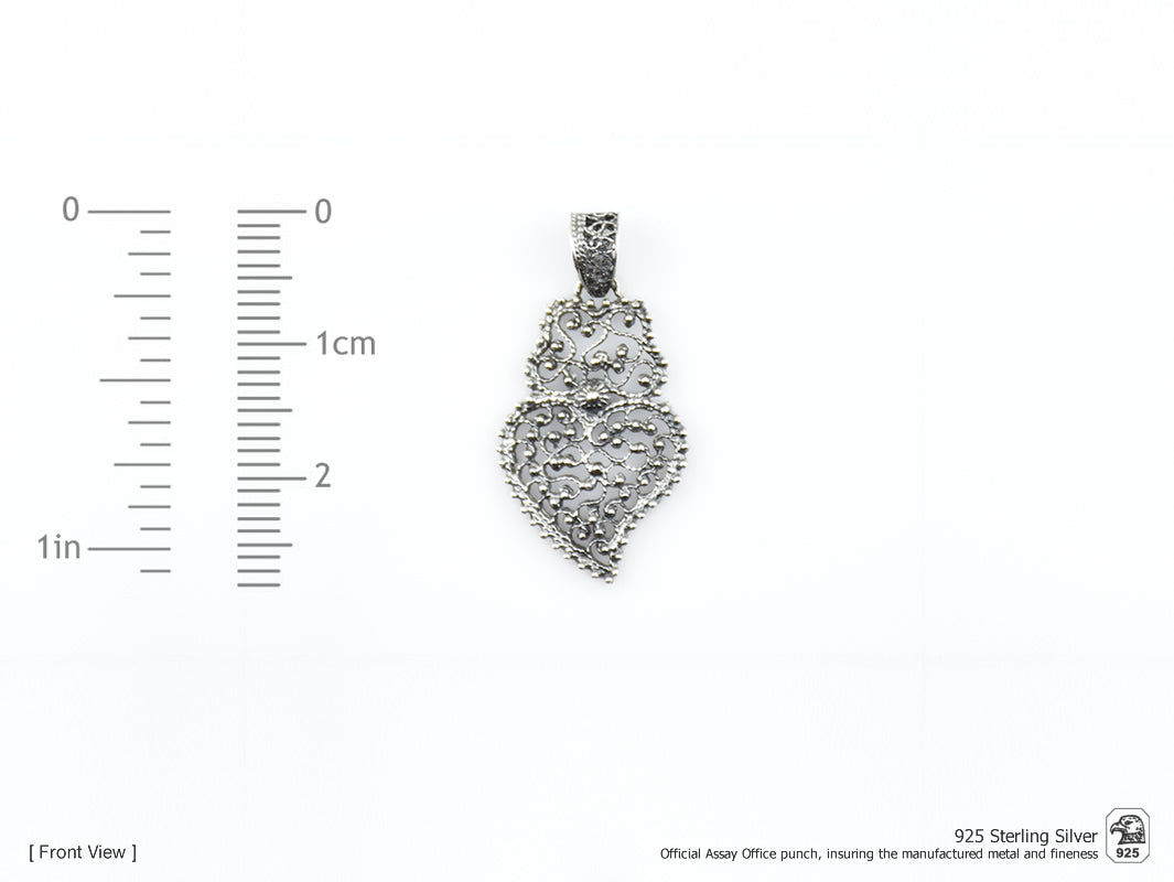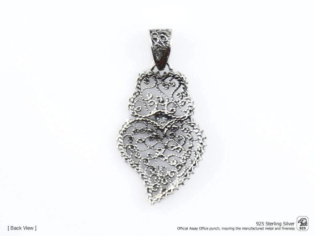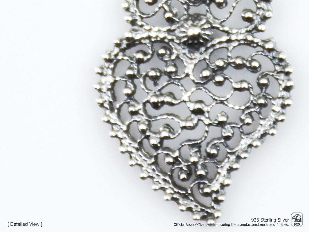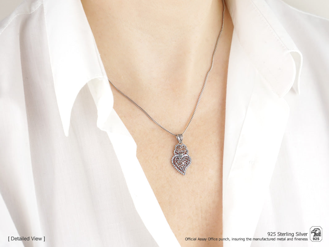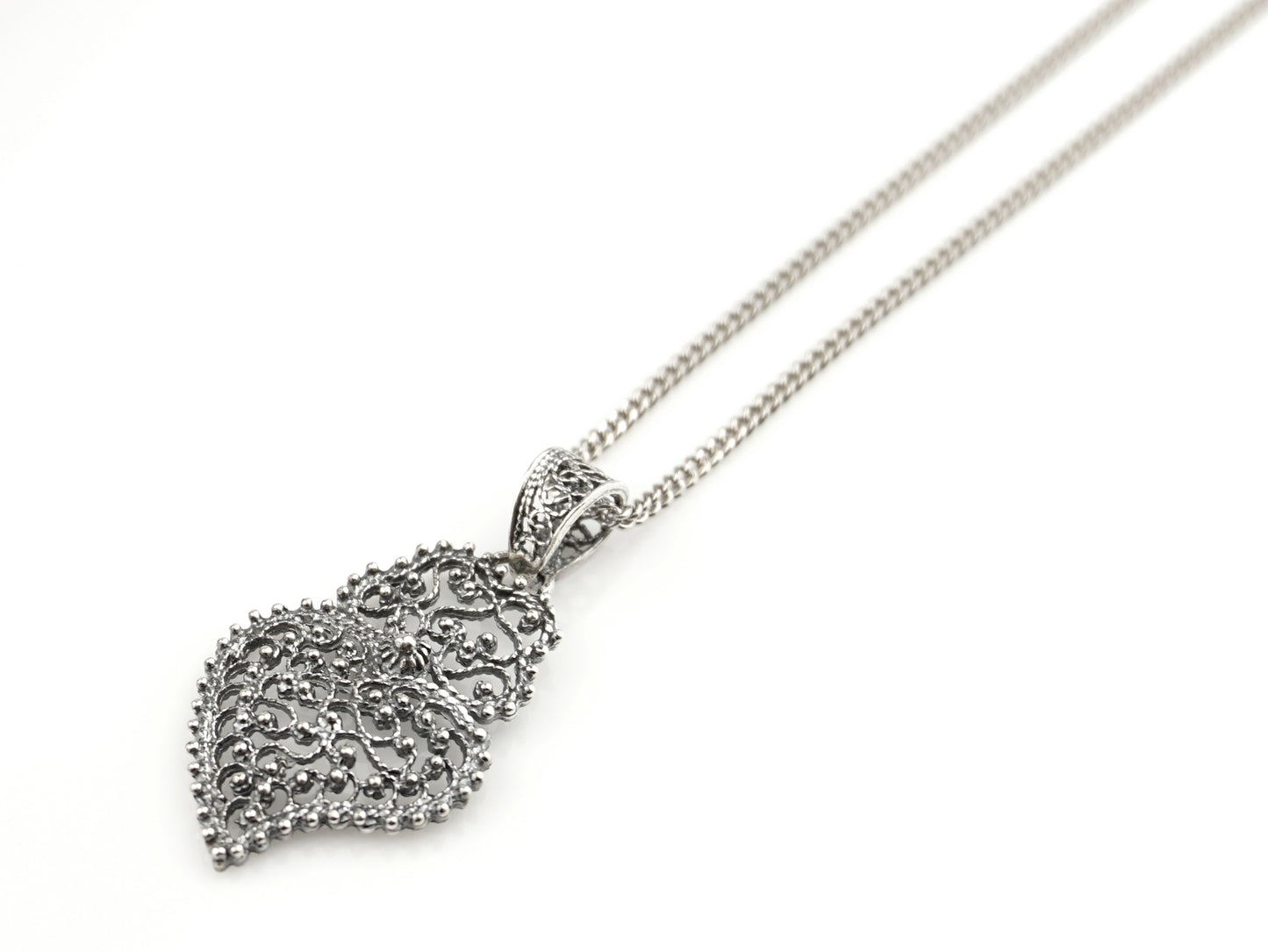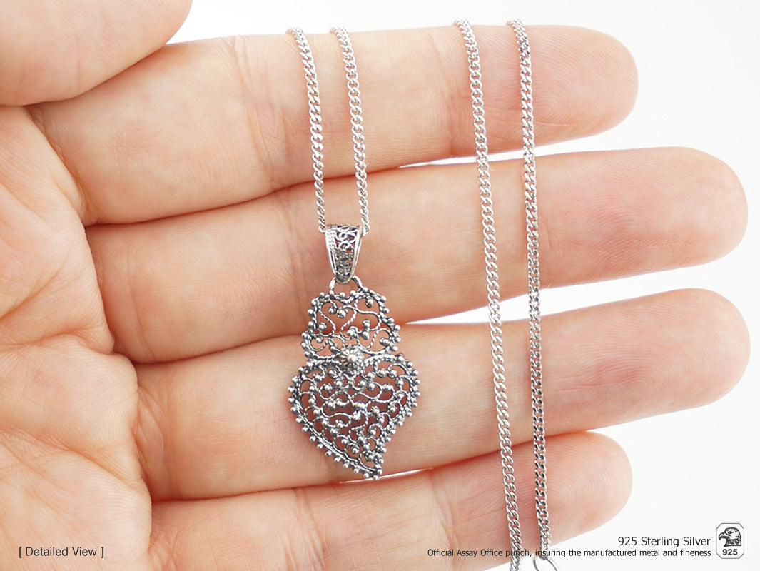 Collier avec Petit Coeur Dentelle, Filigrane Portugaise, Argent 925