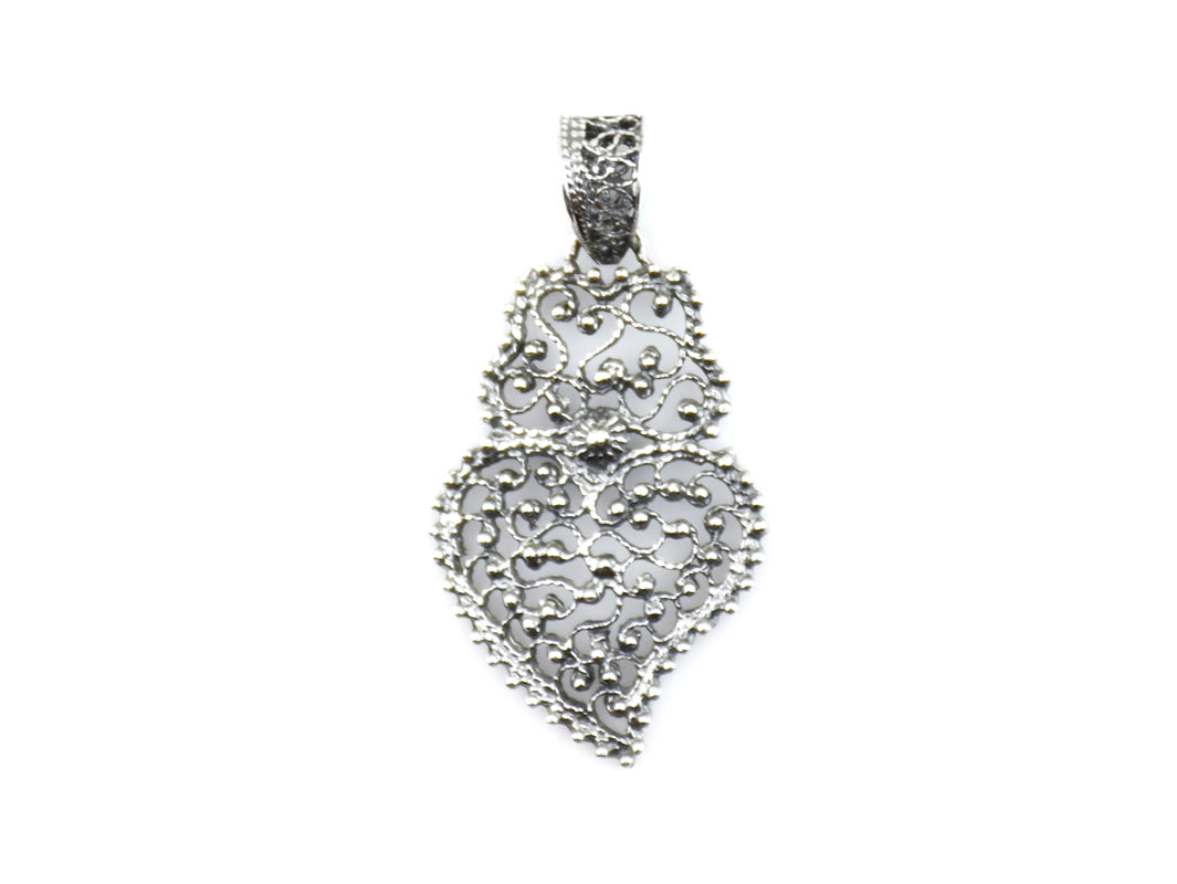 Élégante Médaille Petit Coeur Dentelle. Filigrane Portugaise, fabriqué au Portugal en Argent 925.