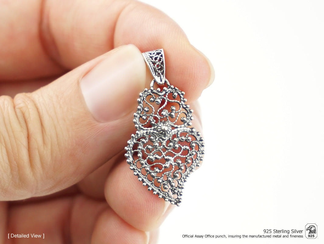 Médaille Petit Coeur Dentelle, Filigrane Portugaise, Argent 925