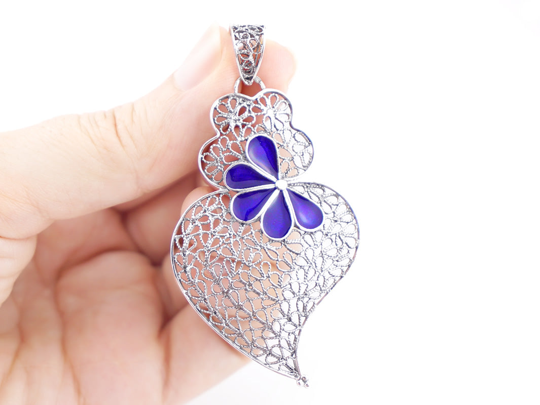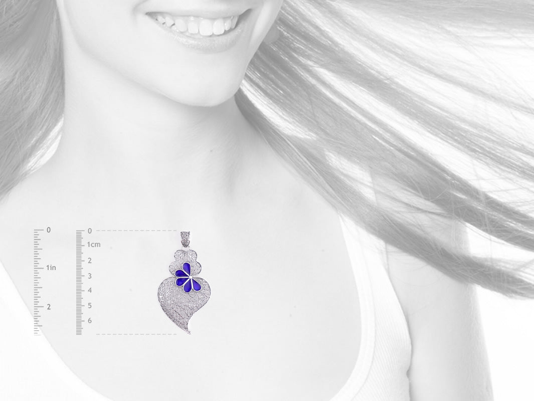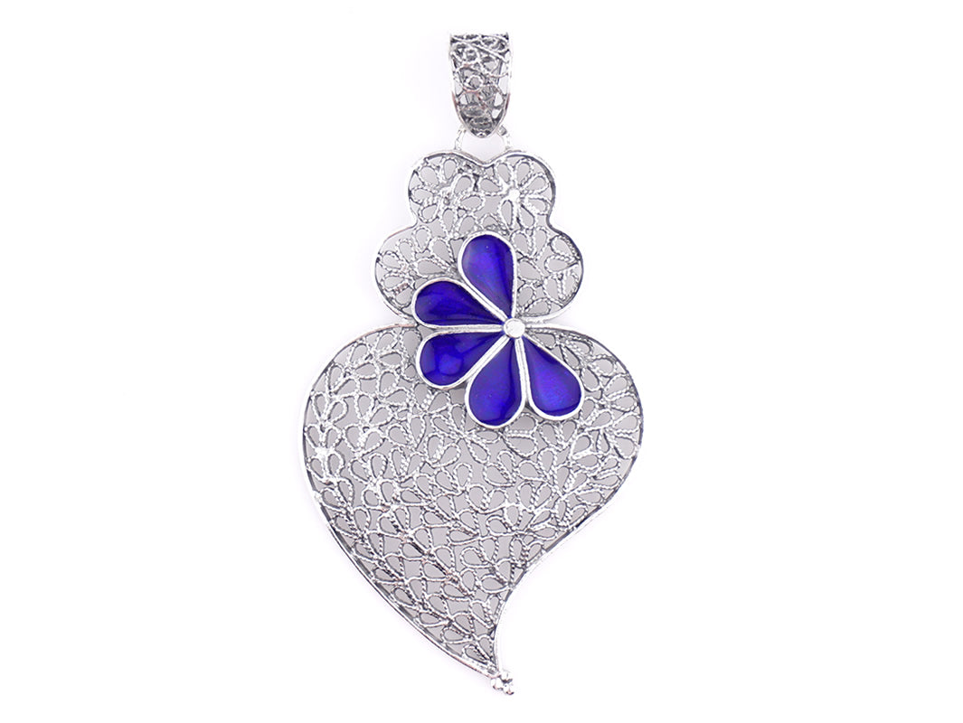 Médaille Coeur de Viana Grande avec Pétales Émaillés, Filigrane Portugaise, Argent 925