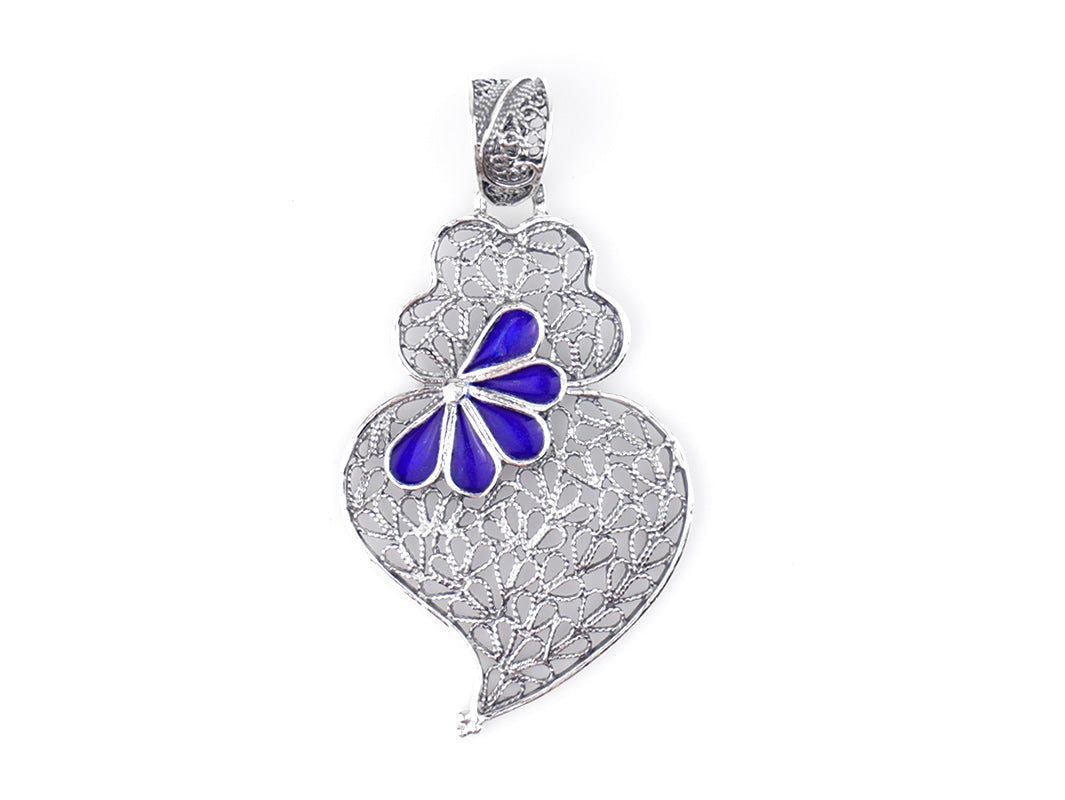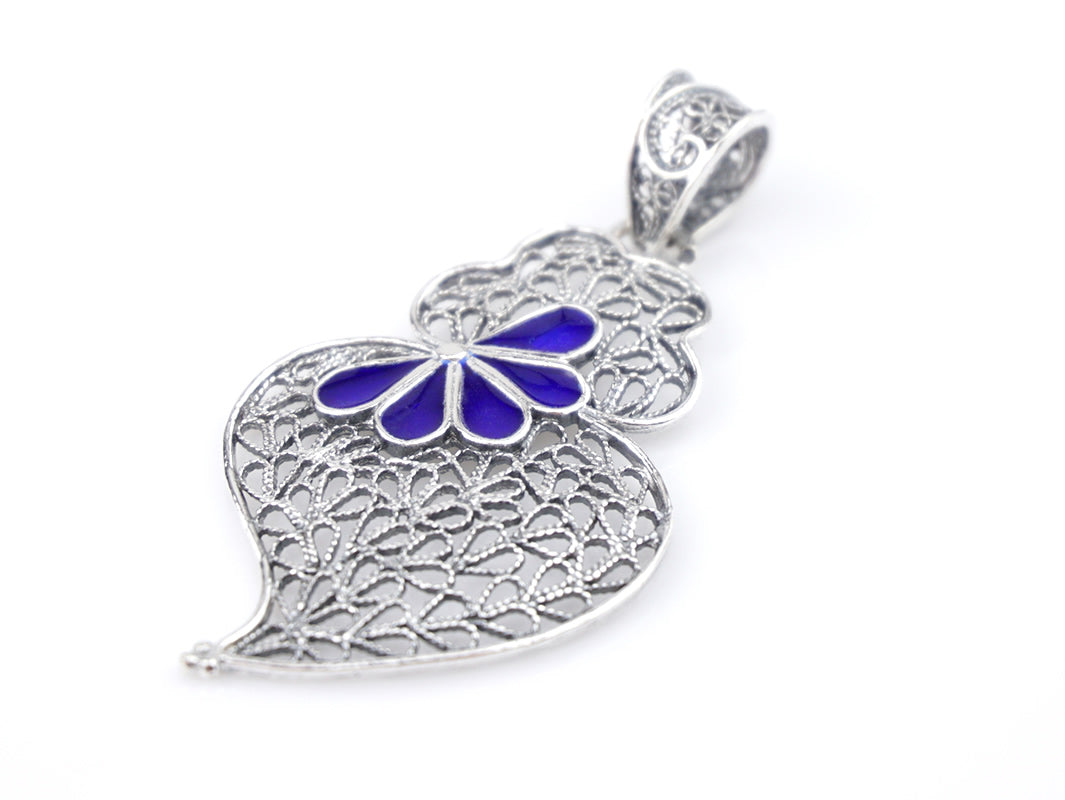 Élégante Médaille Coeur Moyen aux Pétales Émaillées. Filigrane Portugaise, fabriqué au Portugal en Argent 925.