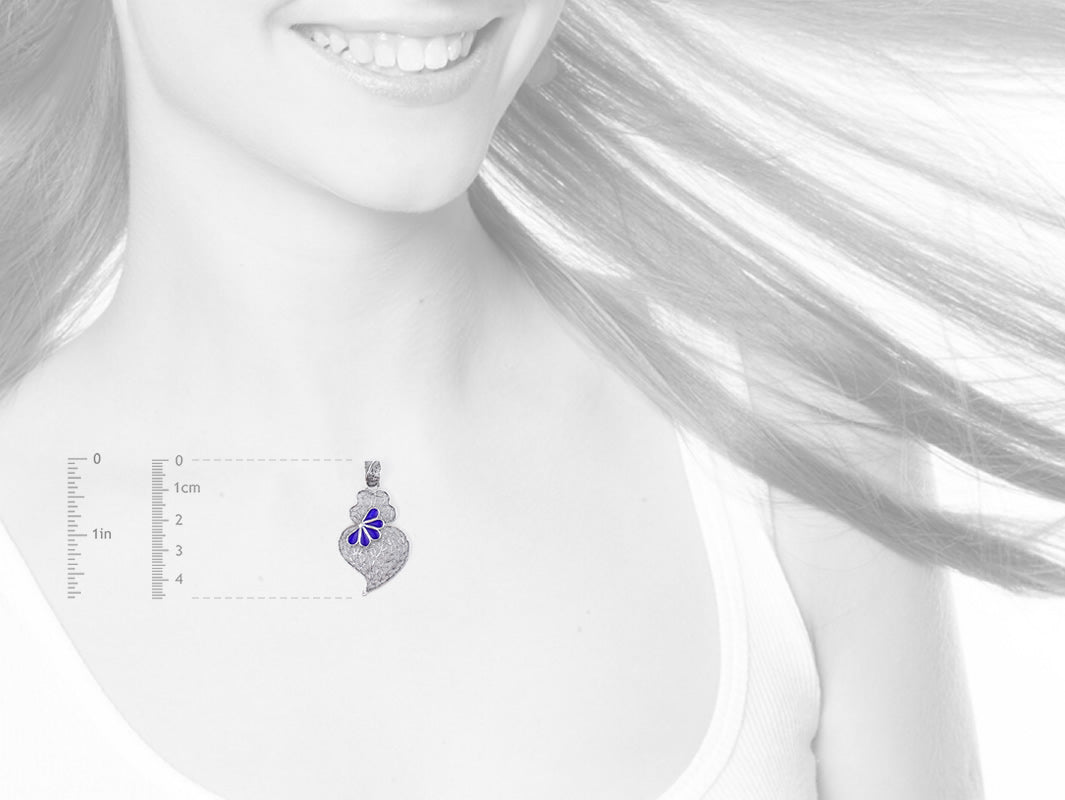 - Modèle: Médaille Coeur Moyen aux Pétales Émaillées en Bleu