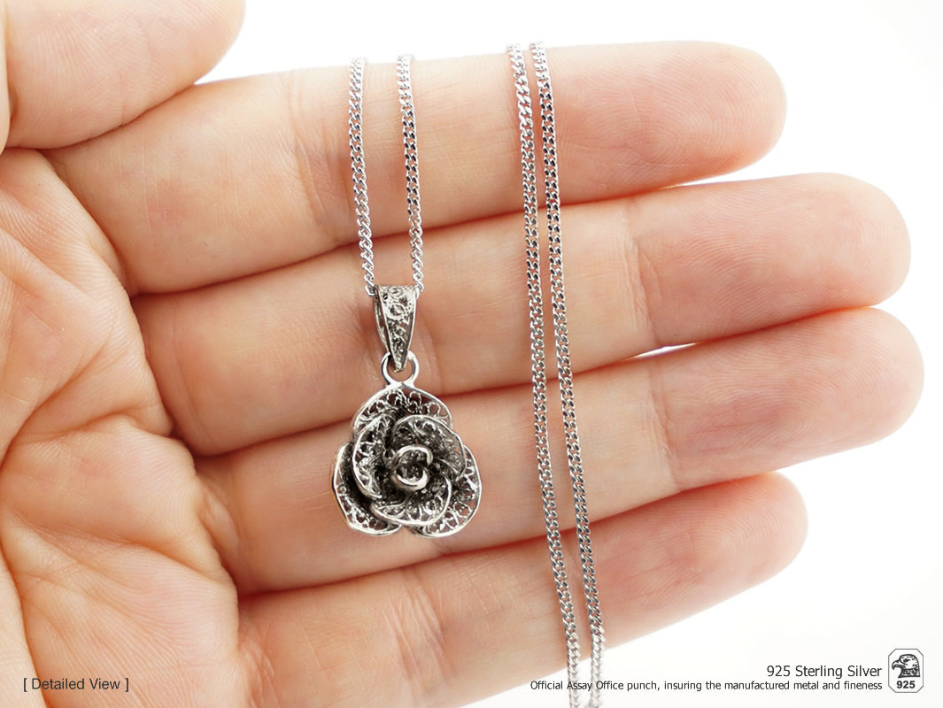 Collier Fleur Élaborée, Filigrane Portugaise, Argent 925