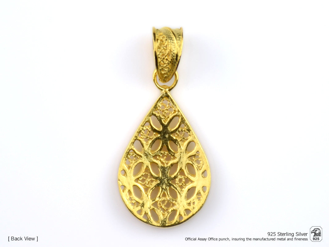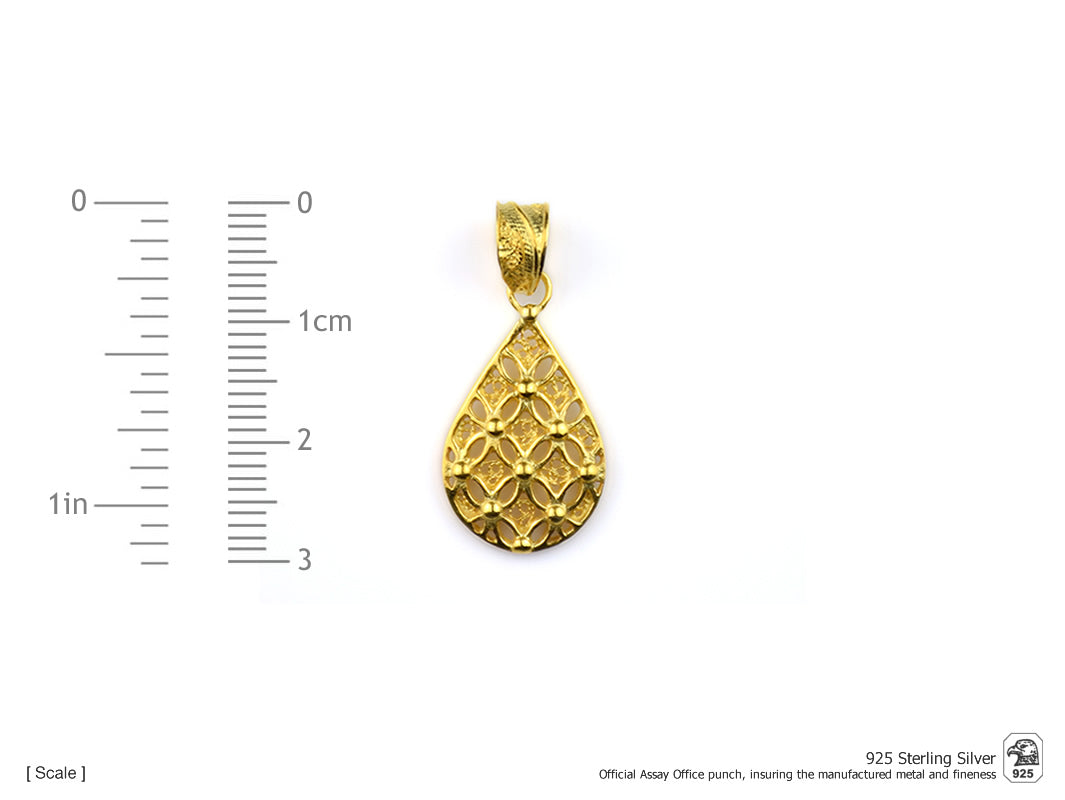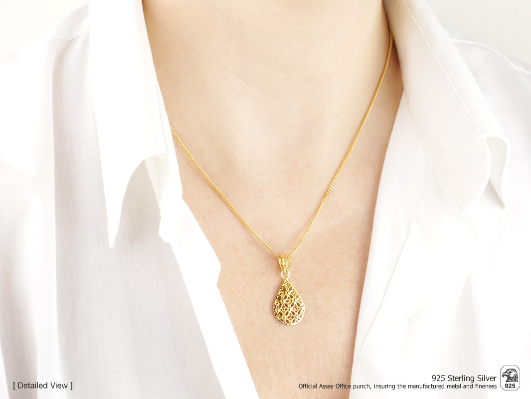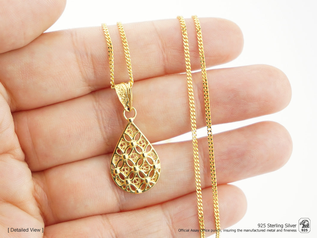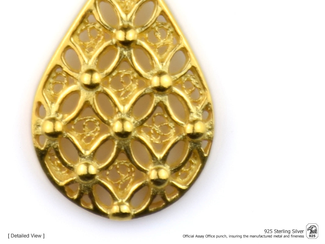 Collier avec Petite Goutte, Filigrane Portugaise, Argent 925 Doré