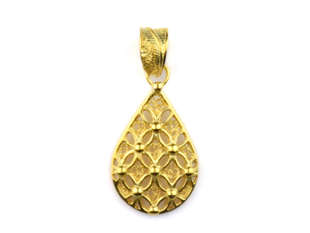 Élégante Médaille Petite Goutte. Filigrane Portugaise, fabriqué au Portugal en Argent 925 Doré.