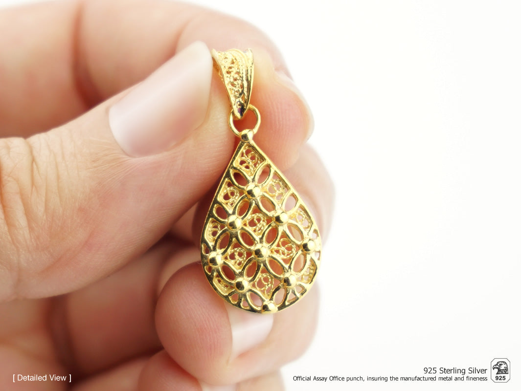 Médaille Petite Goutte, Filigrane Portugaise, Argent 925 Doré