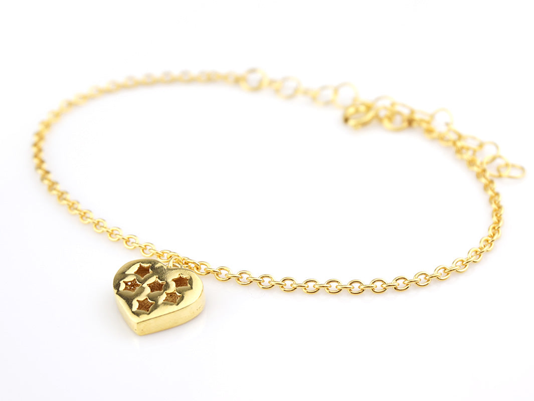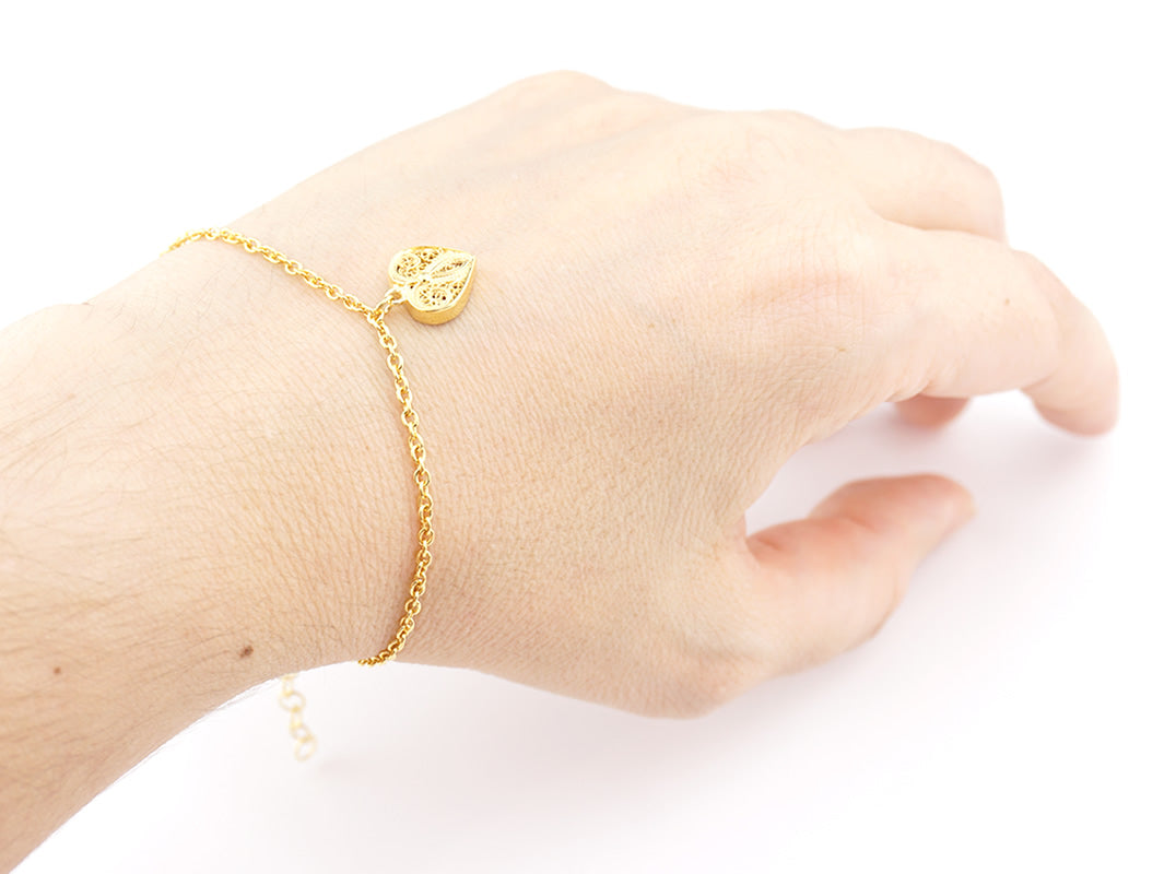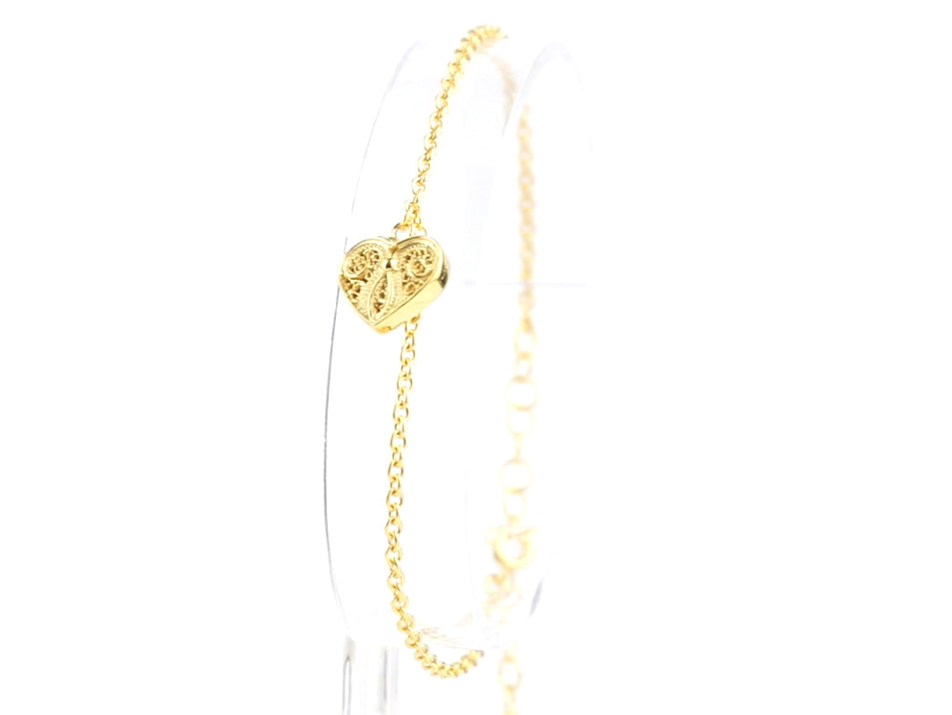 Bracelet au Coeur, Filigrane Portugaise, Argent 925 Doré