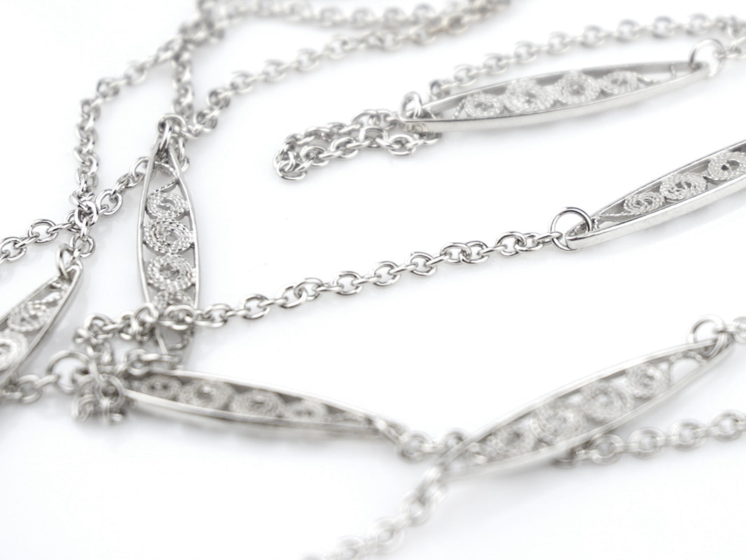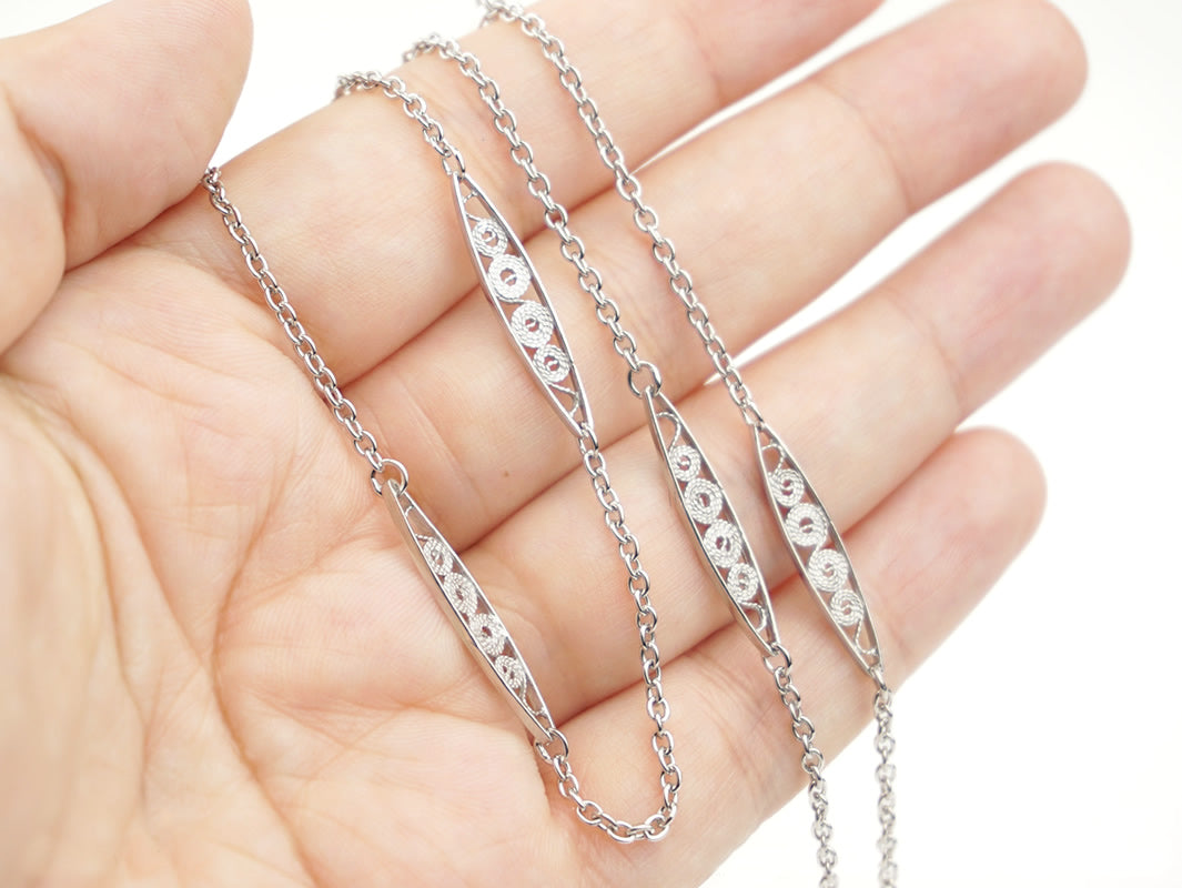 Sautoir Trancelim Semi-long, Filigrane Portugaise, Argent 925 Rhodié