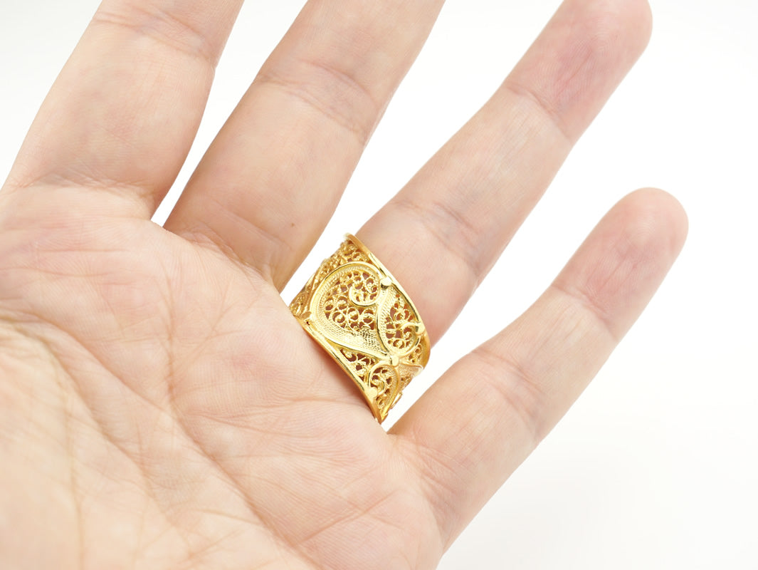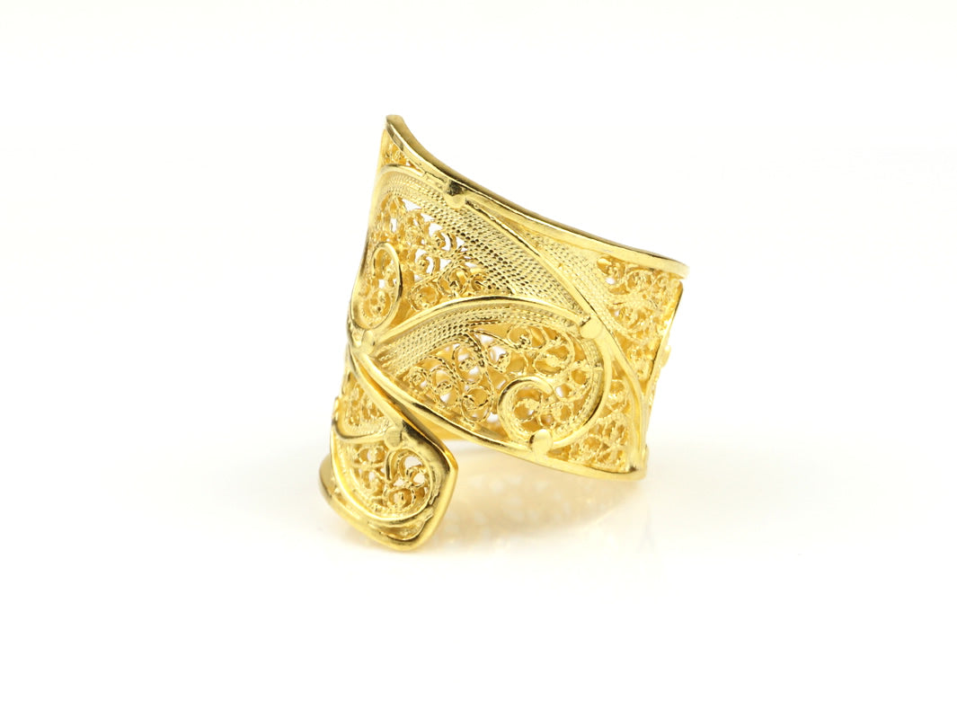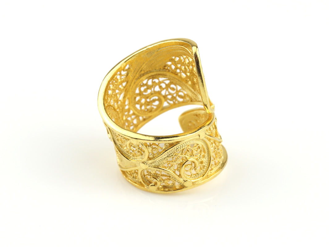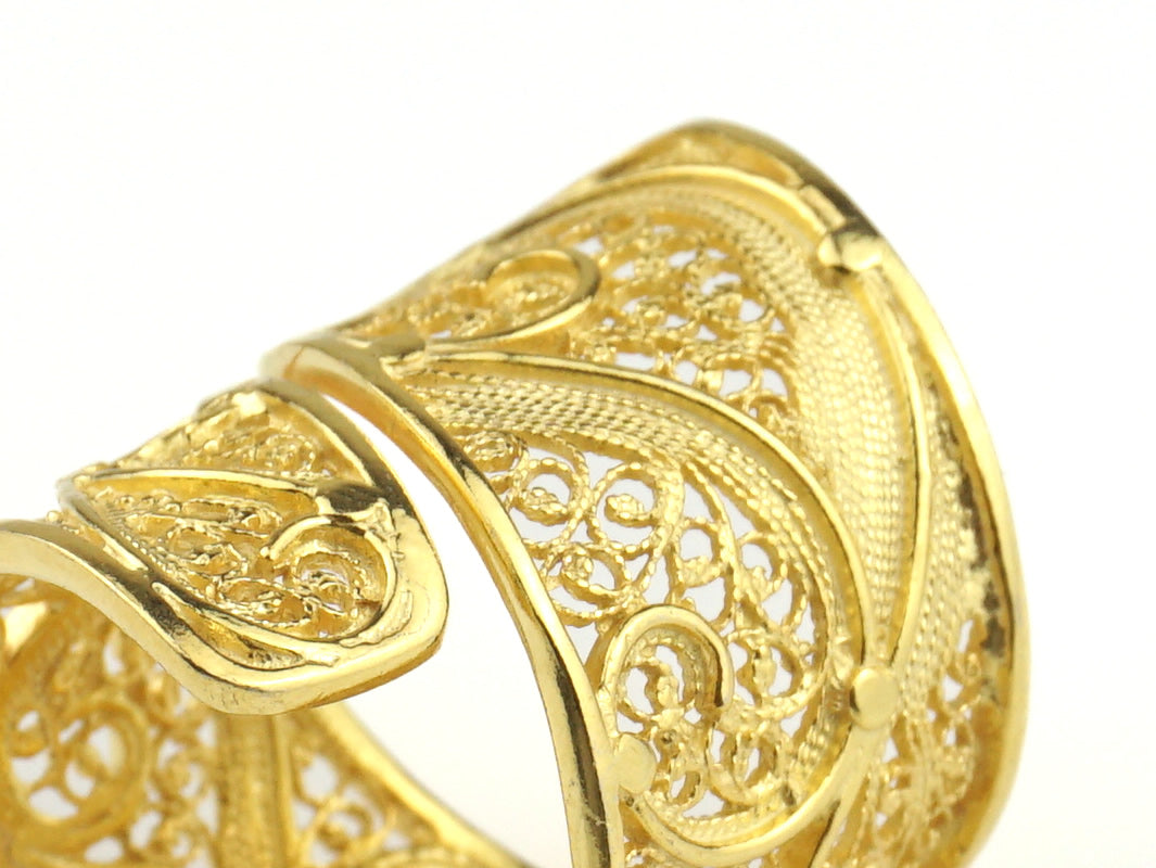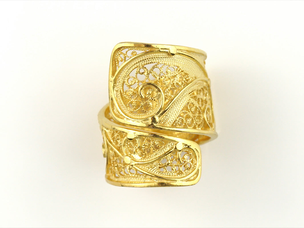 Anel Espiral Ajustável, Filigrana Portuguesa, Prata de Lei 925 Dourada