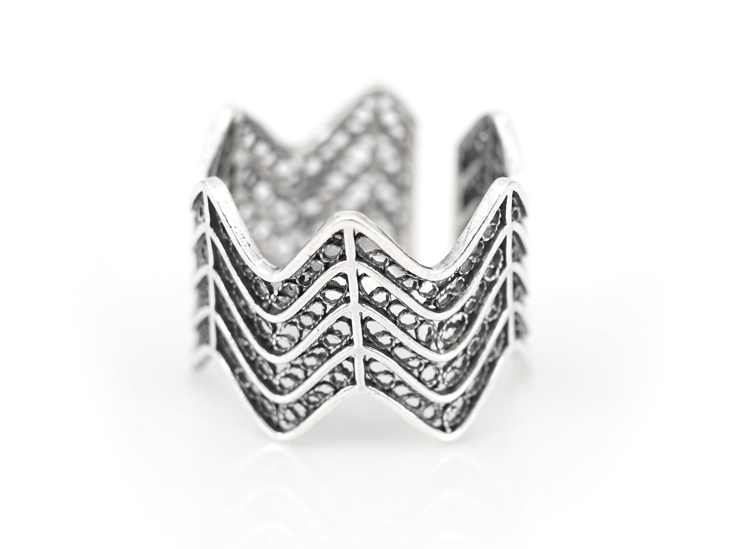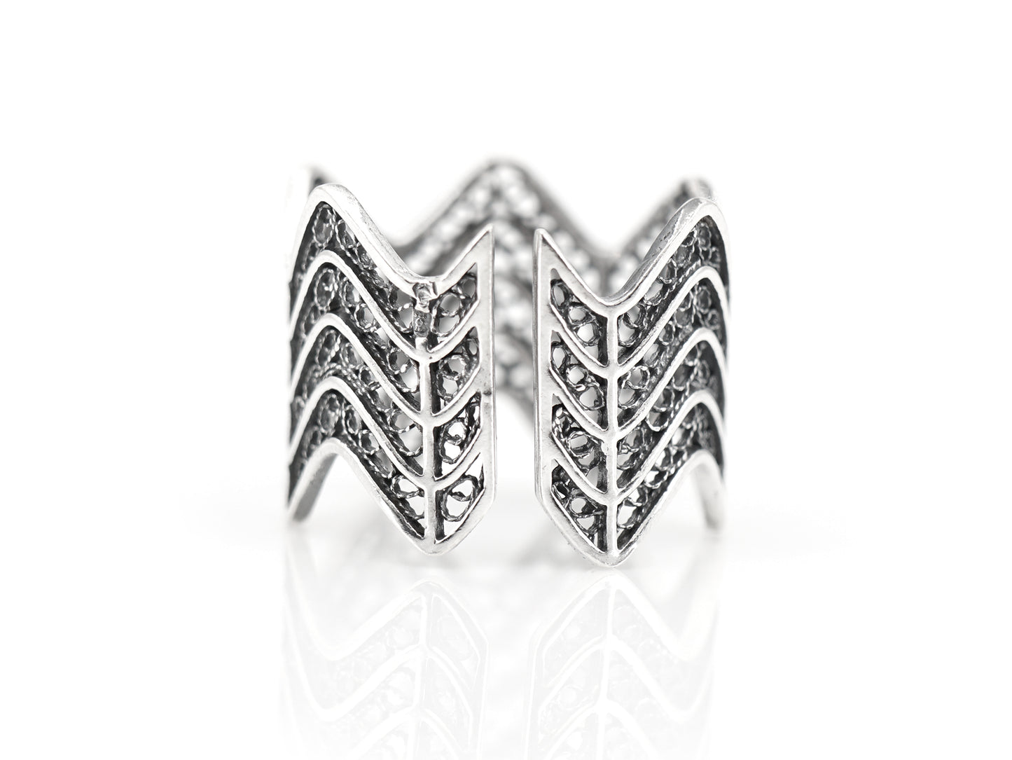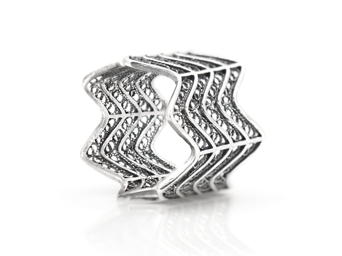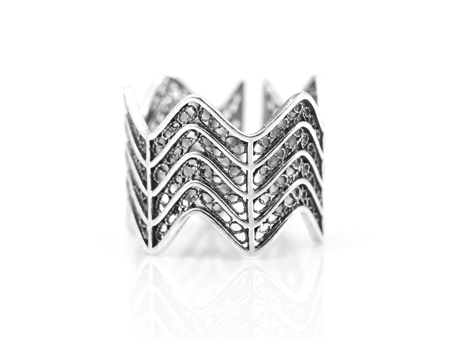 Elegante Anel ajustável em forma de Zigzag. Filigrana Portuguesa, feito em Portugal em Prata de Lei 925.