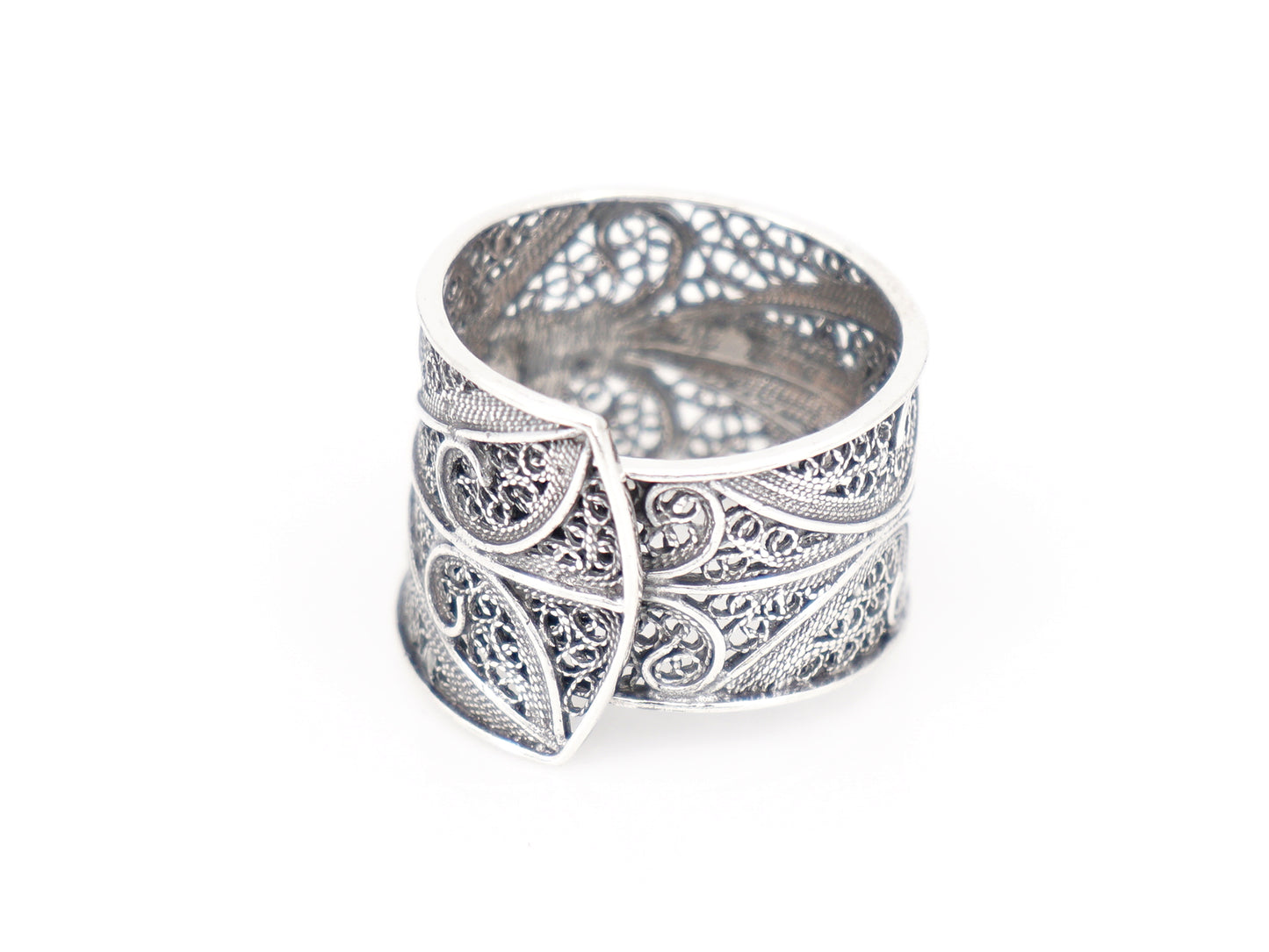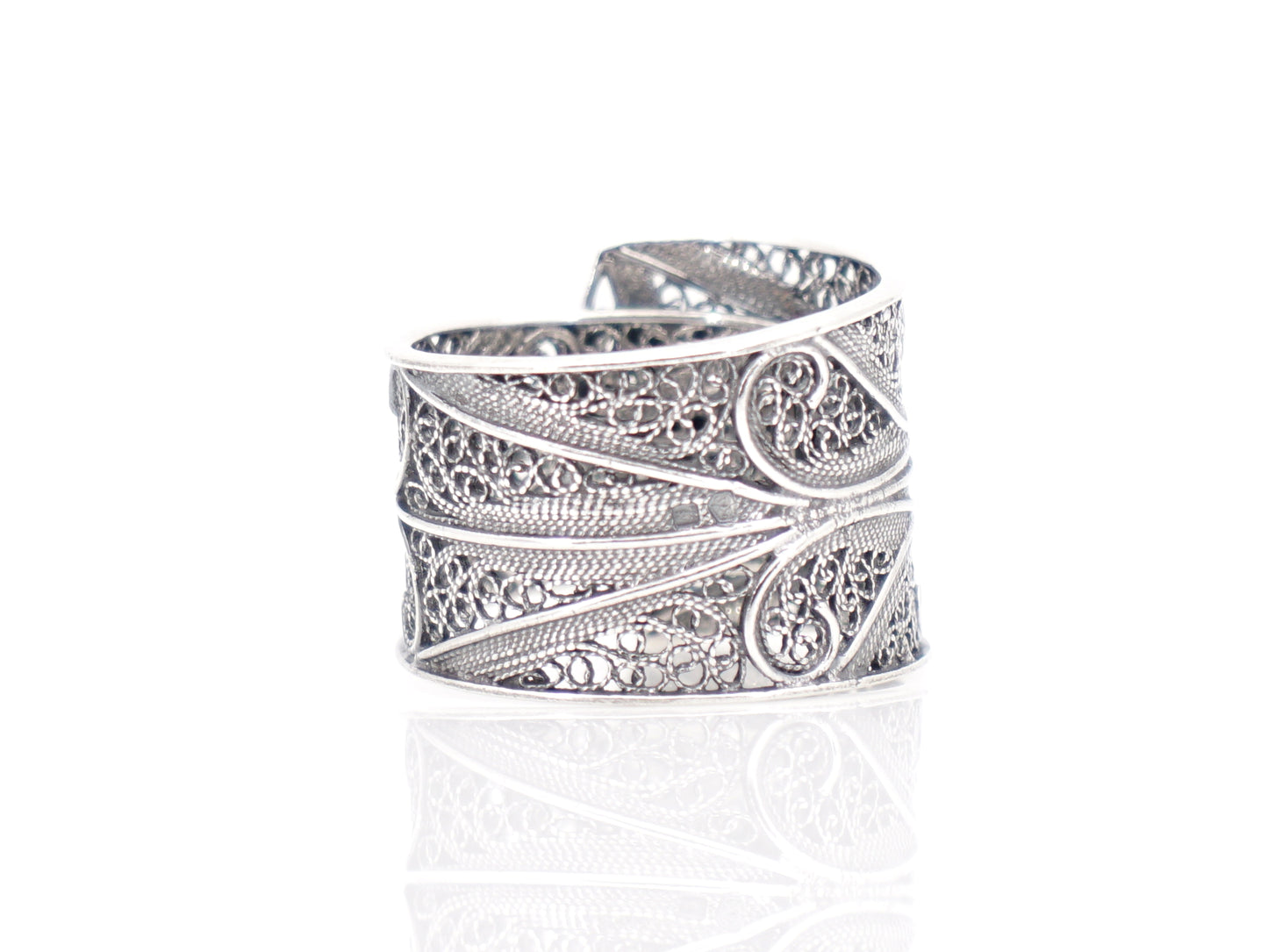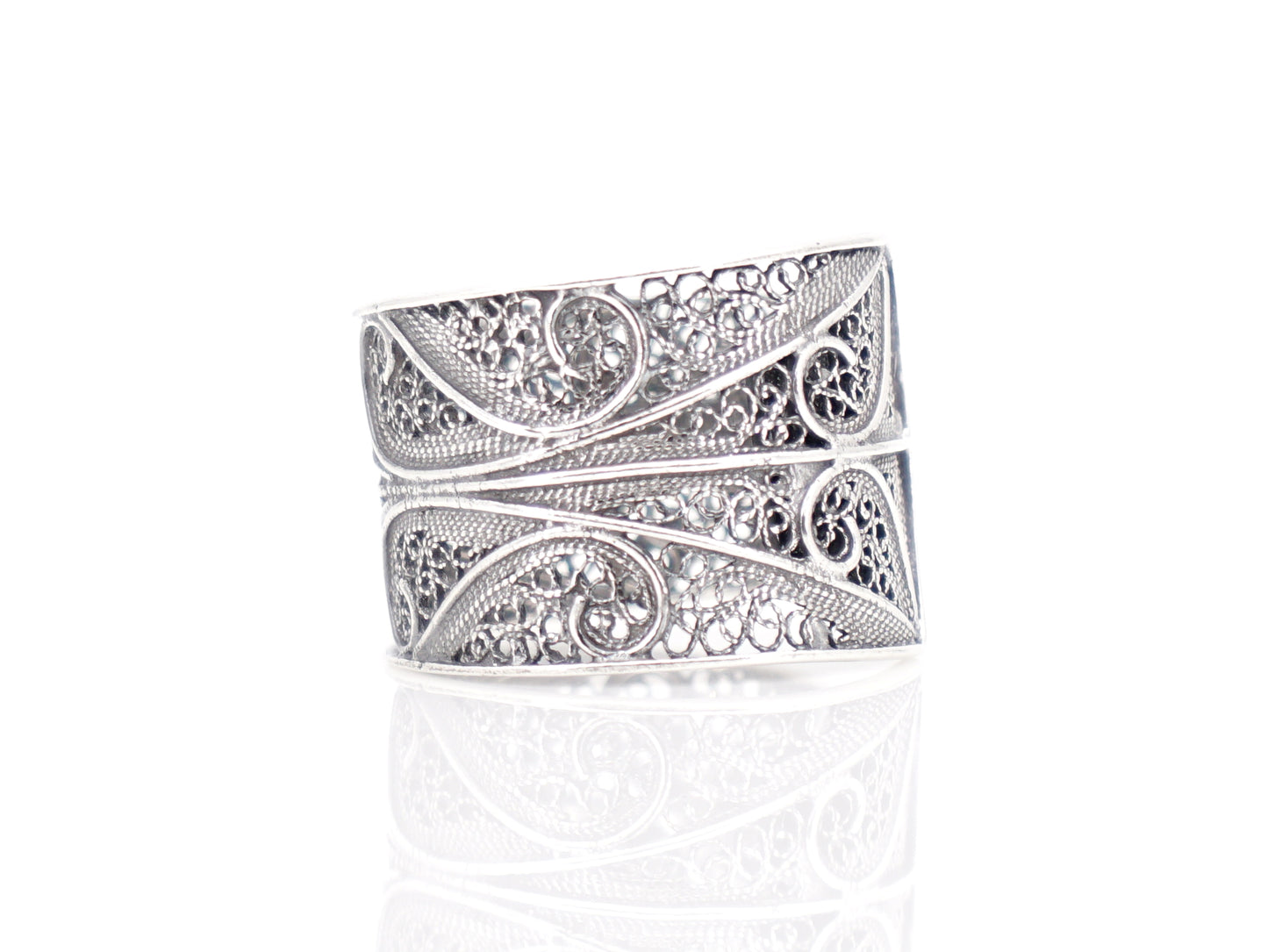 Elegante Anel Arrojado, de tamanho ajustável. Filigrana Portuguesa, feito em Portugal em Prata de Lei 925.