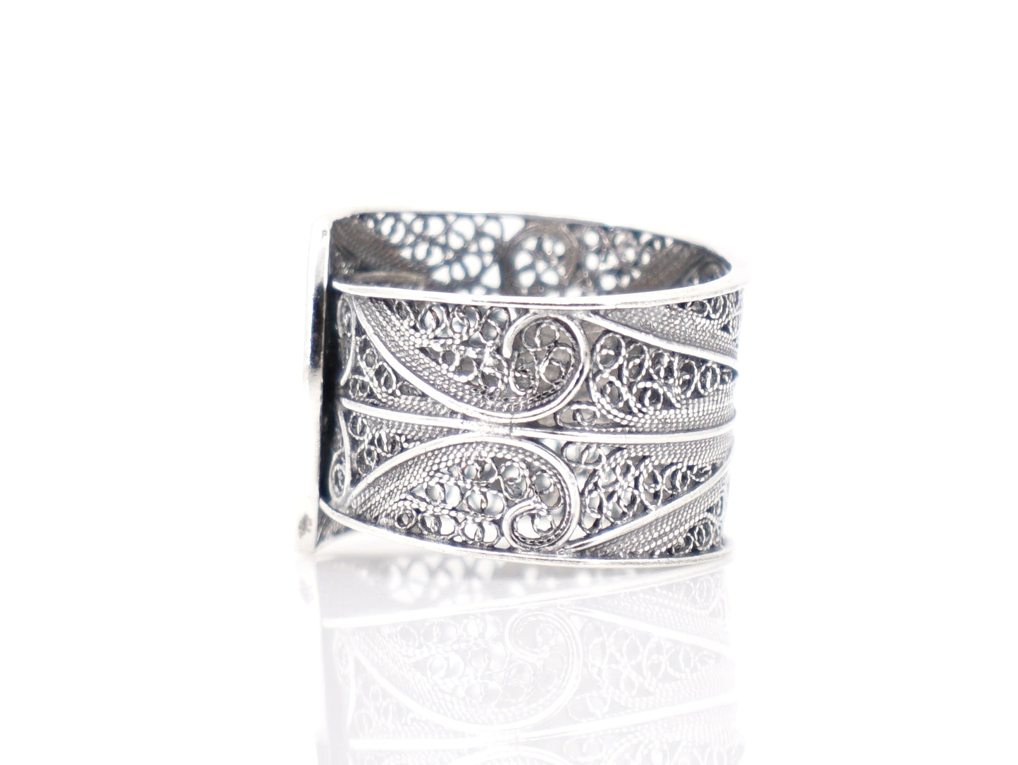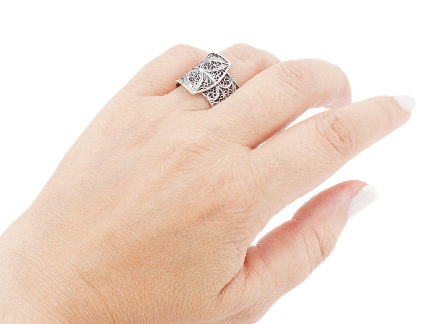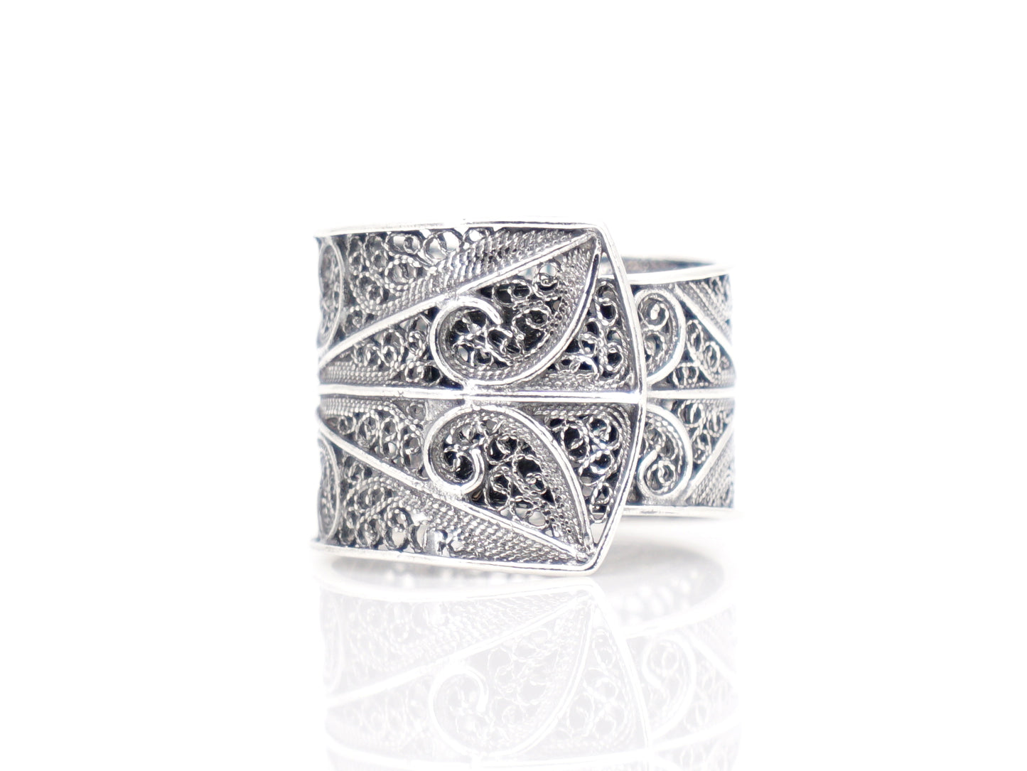 Elegante Anel Arrojado, de tamanho ajustável. Filigrana Portuguesa, feito em Portugal em Prata de Lei 925.
