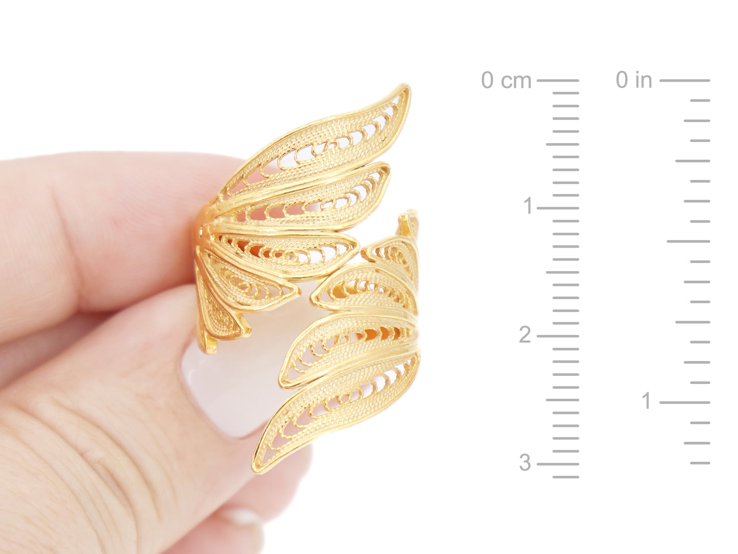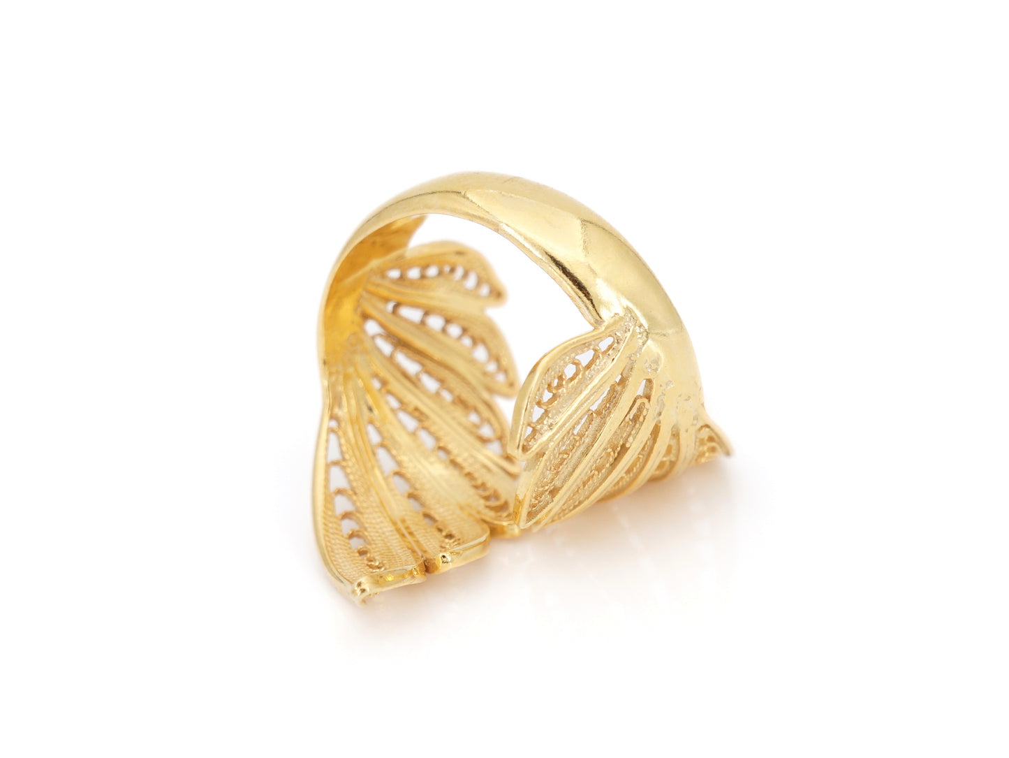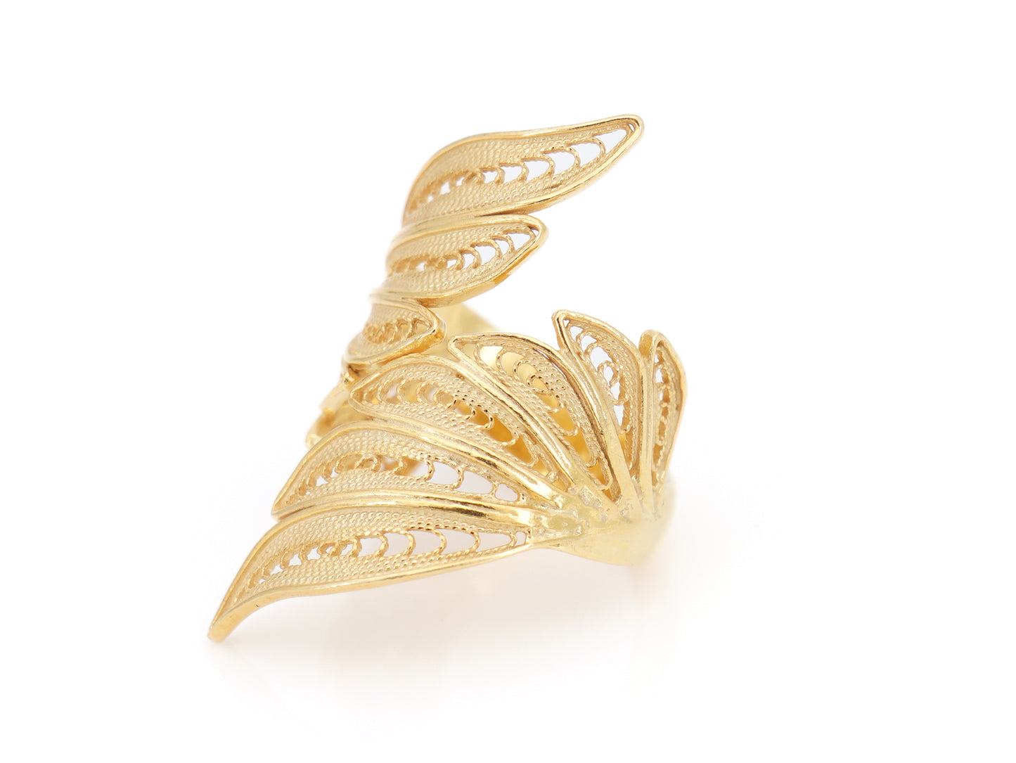 Elegante Anel Alto Asas, de tamanho ajustável. Filigrana Portuguesa, feito em Portugal em Prata de Lei 925, com Banho de Ouro.
