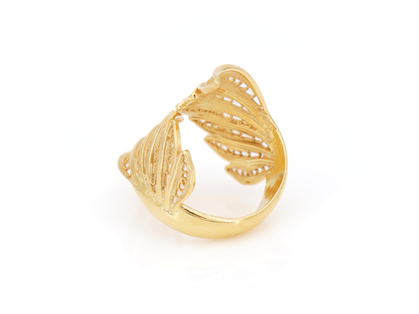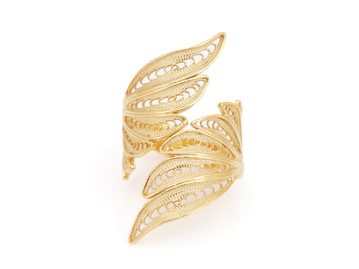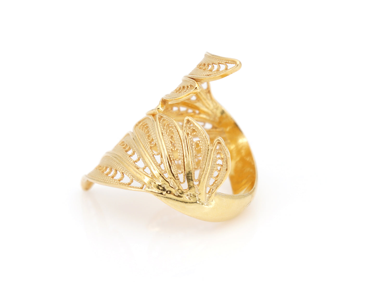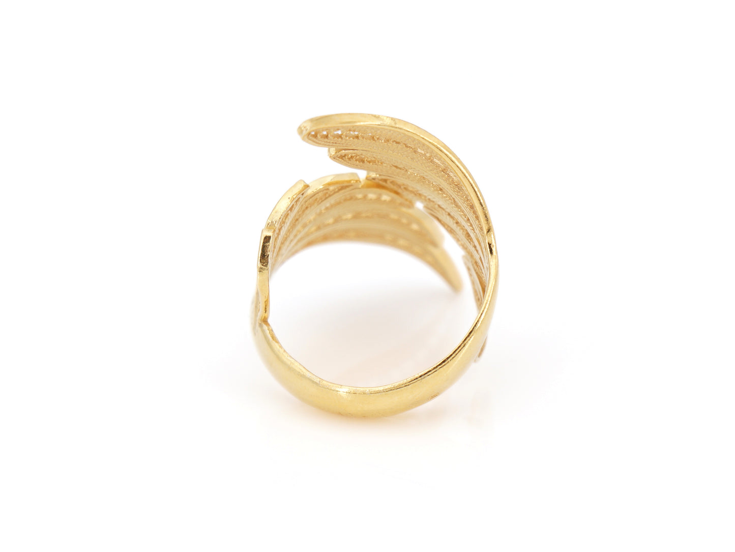Elegante Anel Alto Asas, de tamanho ajustável. Filigrana Portuguesa, feito em Portugal em Prata de Lei 925, com Banho de Ouro.